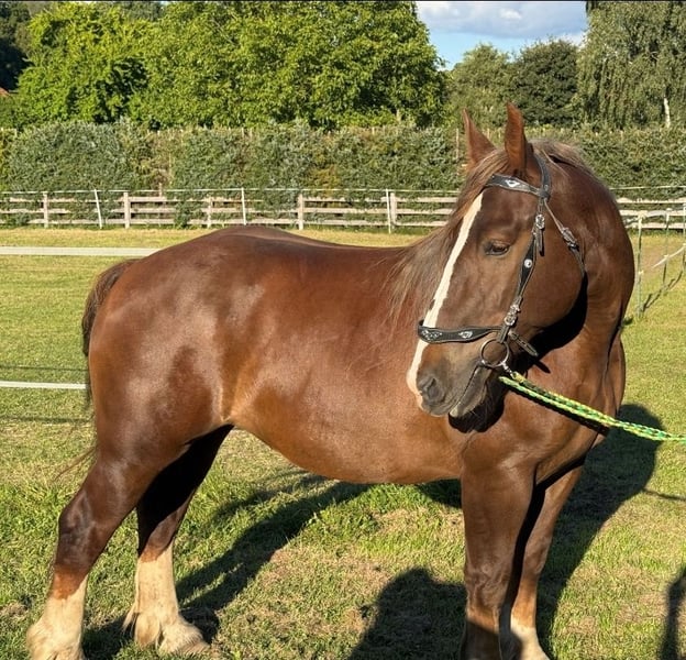 **Sales Advertisement: Beautiful Breton Mare for Sale** We offer a charming Breton mare for sale. **Features:** - **Breed:** Breton - **Gender:** Mare - **Year of Birth:** 2019 - **Color:** Dark Bay - **Height:** 165 cm - **Breeding:** Breeding This mare impresses with her strong character and spirited nature. She is well-trained and suitable for both leisure riding and competition. With her exceptional appearance and friendly demeanor, she is the ideal partner for riders of all experience levels. She would also be excellent for breeding purposes. If you are interested or need further information, please feel free to contact us. Visit us and see for yourself this wonderful mare!