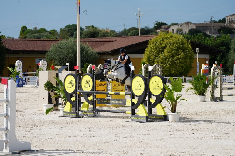 Silvia is an exceptionally special pony. 147 cm of balance, intelligence, and heart: a pony that works for you, forgives you, accompanies you, and helps you grow. She is the kind of horse every parent dreams of for their child and the ideal partner every trainer wishes to have in their stable. 💥 MAIN FEATURES - Height: 147 cm - Category: 115/125 cm with ample room for growth - Temperament: a remarkable head—always alert, cooperative, never confrontational - Heart: tireless, generous, always ready to assist - Jumping style: attentive, reactive, respectful - Handling: incredibly sweet, easy to manage, well-mannered, confident both in the stable and in the arena - Suitable for: perfect for young riders aiming to progress, ideal for gaining experience safely and targeting higher-level competitions