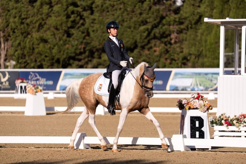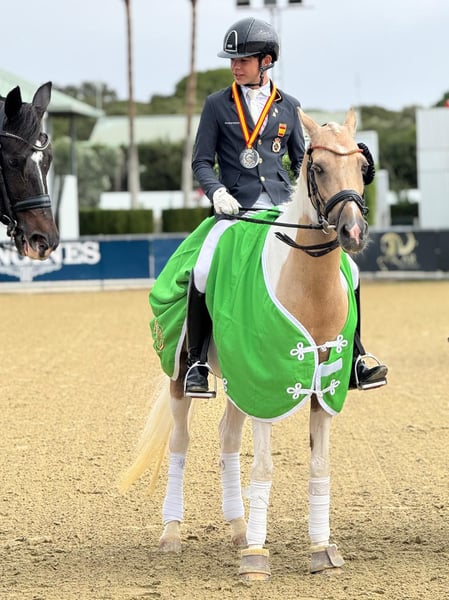 Meet Mon Amie, a beautiful 16-year-old palomino mare with an impressive expression, great nobility, and a lot of class. Her physique, her gaits, and her attitude make her a truly special pony. Imported from the Netherlands this season, she has started competing in high-level competitions for the first time this year… and her evolution has been extraordinary! From her first competitions, she has shown a big heart and total commitment in the ring. She has been growing competition after competition, quickly revealing her true sporting potential. 🔹 Age: 16 years 🔹 Height: 1.49 m 🔹 Color: Palomino 🔹 Breed: Hulpboek Rijpony 🔹 Bloodlines: Heidehof’s Don Diego / Orchard c’Avranches 🔹 Level: FEI Pony and Children’s 0* 🔹 Results: ✨ Member of the Spanish Pony Team – European Championships 2025 🥈 Silver Medal – Spanish Nationals 2025, Dressage, Children’s Category 0* 🥇 Gold Medal – Andalusian Championships 2025, Pony D • Numerous podium finishes in national and international competitions • Scores between 68% and 70% Versatility: Can compete in FEI Pony, Alevín, Infantiles, and Children’s 0* categories Character: All heart. Sweet, hard-working, confident, and very cooperative. She will delight her new rider, both at home and in competition. Ideal for: Families and trainers looking for a mature, reliable, and competitive FEI pony for a young rider who wants to compete ambitiously and aims for significant results both nationally and internationally. Dressage Sotogrande (Spain) Diego Ramírez – +34 625 560 289 info@dressagesotogrande.com Videos, results, and veterinary check available International transport available A competition mare with soul, beauty, and a lot of class. Mon Amie has everything to be an unforgettable partner.