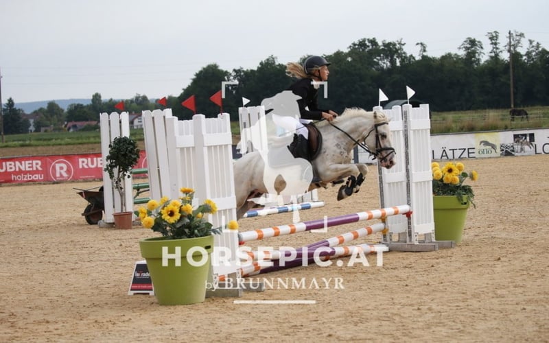 Este semental es el pony adecuado para días divertidos. Ya sea para pasear o saltar en torneos. Es muy aprensivo y tiene potencial para saltar. Es bueno y saludable. Ha sido un participante exitoso en la feria de Wels. Está siendo preparado para torneos de salto. Le gusta salir a pasear con niños. El herrador y el transporte no son un problema. Para más preguntas o videos, por favor escriba.