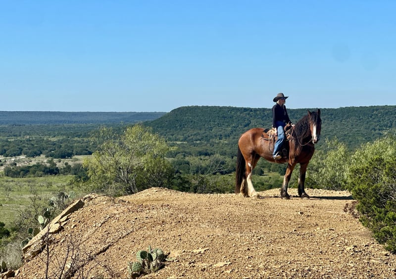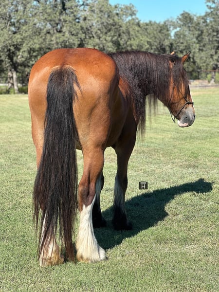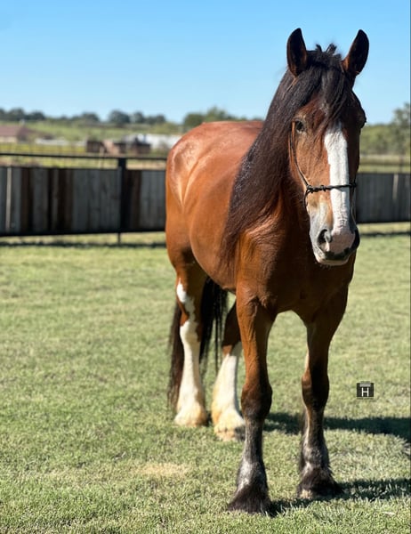ONLINE AUCTION Place your bids at www.PlatinumEquineAuction.com Starting Bid $3500 Auction ends October 20th, 2024 Need a new saddle? Check out White Rock Saddles on our website or Facebook! Prada is a stunning Clydesdale mare standing 17 hands tall with a mane and tail to die for! She is a blast to ride and soooo smooth. Prada is gentle and enjoyable to ride every single time you pull her out to ride her – even with time off. Prada is athletic and knows how to use herself, sure footed and can walk, trot, and lope like a little horse. She is soft in the face and rides in a simple snaffle bit. She has an excellent stop and moves off leg well. Prada has been ridden out on the trails and out on the ranch most of her life and is a veteran out there. She will go up, down, over and through anything and is happy to go out alone or tag along in a group. We have taken her down the freeway and thrown all the obstacles at her which she has taken to without missing a beat. Prada is sure to get you noticed and will keep a smile on your face the entire time you ride her. She is good in a pasture or a stalled setting as well as good with others or alone. She is very sweet and will even put her head down so you can bridle and unbridle her. She is sound and an easy keeper! FMI call/text Holland Horse Co. Chanel 559-978-6320. Located in Jacksboro, TX. Happy to answer any questions or help arrange shipping. ONLINE AUCTION Place your bids at www.PlatinumEquineAuction.com Starting Bid $3500 Auction ends October 20th, 2024 Need a new saddle? Check out White Rock Saddles on our website or Facebook!