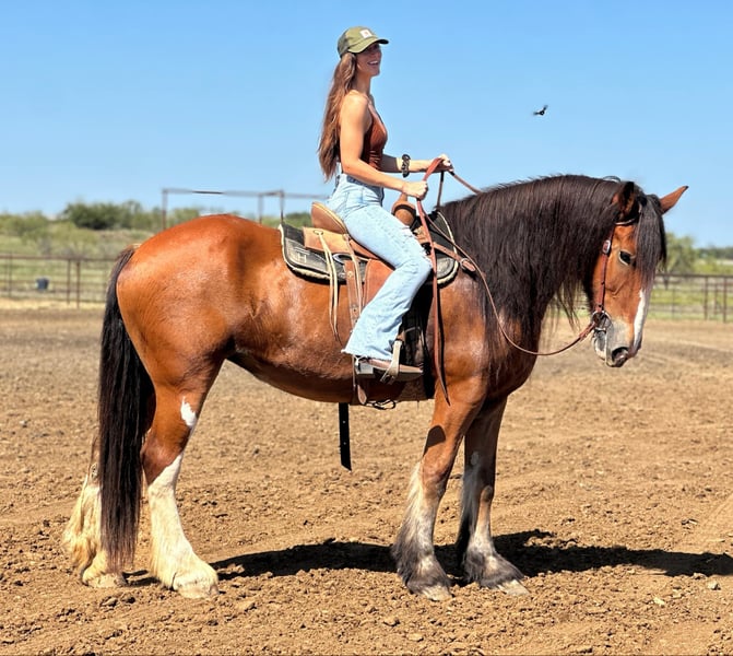 Asta all'asta online Fai la tua offerta su www.PlatinumEquineAuction.com Offerta di partenza 3.500 dollari L'asta si chiude il 20 ottobre 2024 Hai bisogno di un nuovo saddle? Dai un'occhiata a White Rock Saddles sul nostro sito o sulla nostra pagina Facebook! Prada è una splendida cavalla Clydesdale alta circa 1,75 m (17 mani), con una criniera e una coda da sogno! È un vero piacere da cavalcare, molto morbida e reattiva. Prada è gentile e piacevole da montare ogni volta, anche dopo un periodo di inattività. È atletica, sa usare bene il suo corpo, sicura sui piedi e sa camminare, trottare e galoppare come un pony. Ha un muso morbido ed è cavalcata con un semplice bit a naso. Ha un ottimo arresto e risponde bene alle gambe. Prada è stata portata a cavallo sui sentieri e in ranch per la maggior parte della sua vita ed è una veterana in questi ambienti. Affronta salite, discese, ostacoli e passaggi stretti senza problemi, ed è felice di uscire da sola o in compagnia. L’abbiamo portata anche sulla strada principale e superato tutti gli ostacoli senza perdere un colpo. Prada sicuramente attirerà l’attenzione e ti farà sorridere durante tutta la cavalcata. È adatta sia al pascolo che alla stalla, e si comporta bene sia da sola che con altri cavalli. È molto dolce e si lascia facilmente bridare e disbridare. È in salute, facile da mantenere e molto affidabile! Per maggiori informazioni, chiama o invia un messaggio a Holland Horse Co., Chanel al 559-978-6320. Si trova a Jacksboro, Texas. Siamo felici di rispondere a qualsiasi domanda o di aiutarti a organizzare la spedizione.