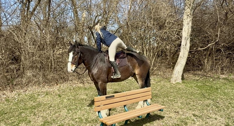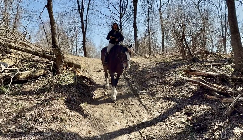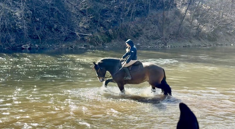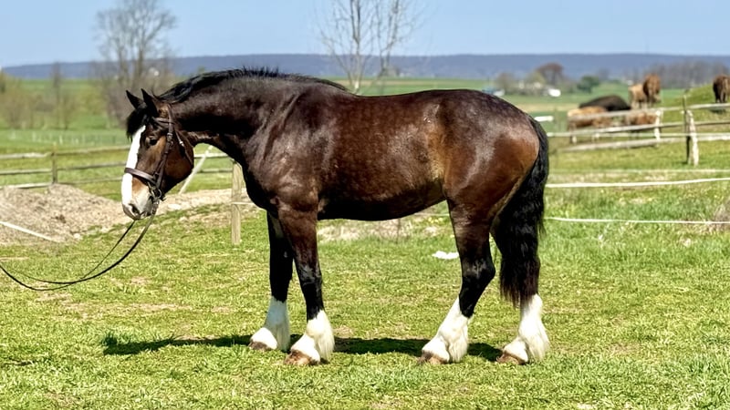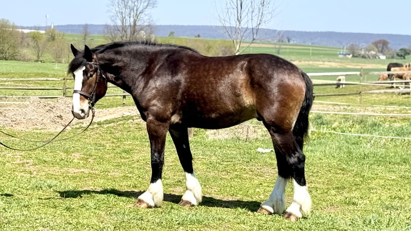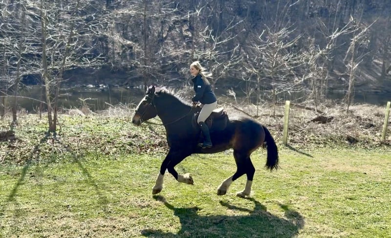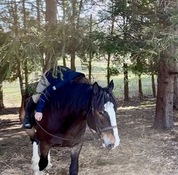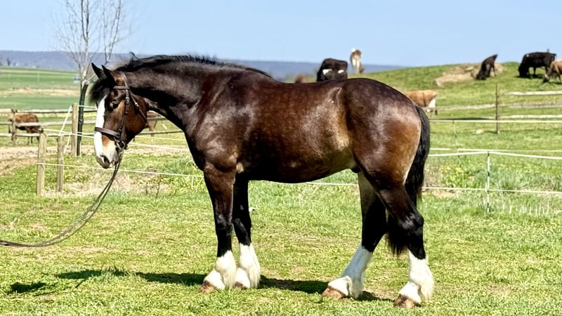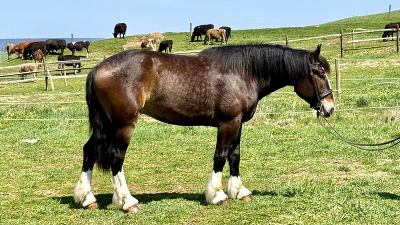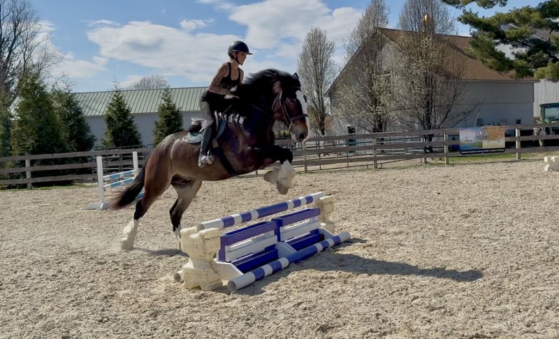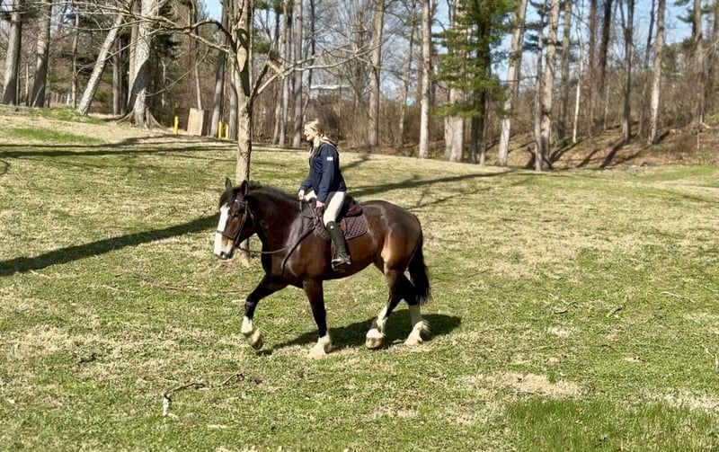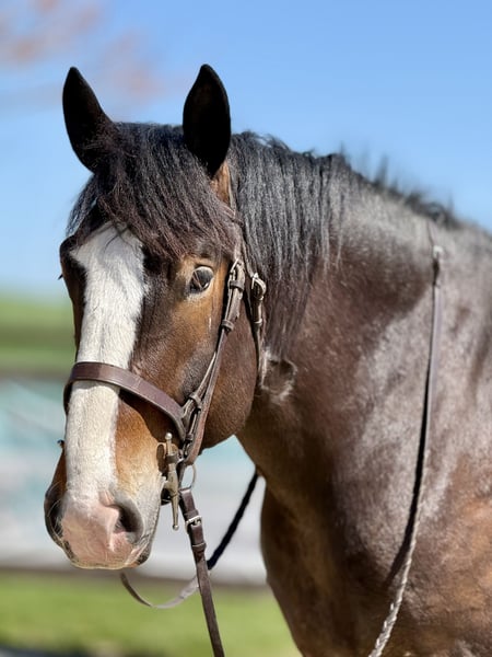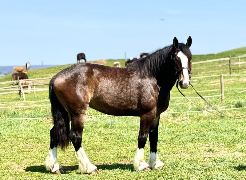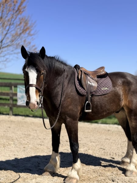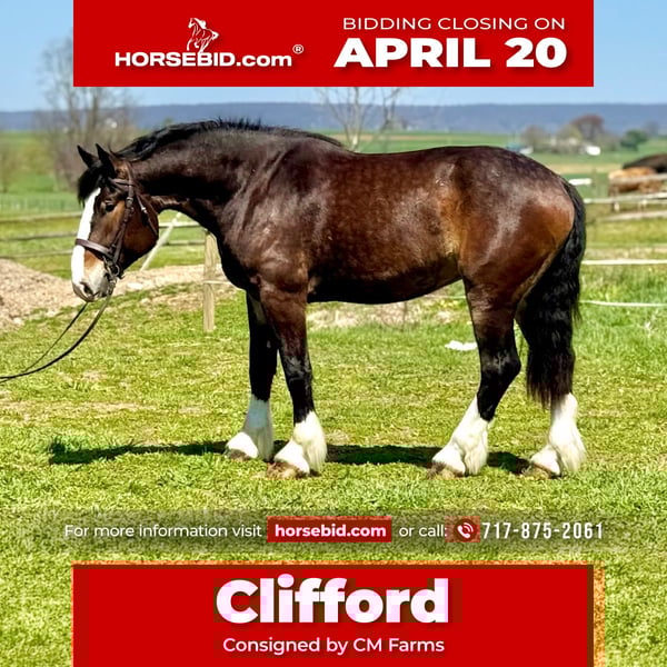 ⚜️𝐭𝐡𝐞 𝓔𝓵𝓲𝓽𝓮 𝐒𝐩𝐫𝐢𝐧𝐠 𝐂𝐥𝐚𝐬𝐬𝐢𝐜⚜️ Happening now thru MONDAY | APRIL 20th - Available EXCLUSIVELY on HorseBid's website! For more details and to register visit: www.Horsebid.com CONSIGNOR CONTACT: CM Farms 717-875-2061 LOCATION: Gap, PA BREED: Clyde/Perch/QH REGISTERED: No REGISTERED NAME: Clifford COLOR: Bay HEIGHT: 17 AGE: 6 GENDER: Gelding Meet ✨Clifford!✨ This handsome gelding is a 6-year-old, ½ Clyde, ¼ Perch, ¼ QH cross. Standing a sturdy 17 hands, he’s hard to miss! He’s got all the flash, with his big blaze and pretty white socks. Clydes are known for being gentle giants, and Clifford truly lives up to that expectation—he’s always the first to come running in from the field! Not only is he gentle, but he’s incredibly versatile and athletic for his size. He can jump around and then walk on a loose rein right after. He’s a total trail master and has been suitable for riders of all sizes and levels. He’s a natural babysitter, and his good looks are just the tip of the iceberg when it comes to his qualities! In the ring, this big boy has lovely, easy-to-ride gaits at the walk, trot, and canter. He’s balanced, well-rounded, and will even do walk-to-canter transitions. He’s very adaptable to his rider and adjustable at all three gaits. He’s more of a push ride; however, once you ask him to go, he has great self-carriage and impulsion. He has big, floaty movement while still being easy to sit at the trot and canter. He moves well off the leg and can take a joke like a champ. He has toted around everyone, from dead beginners to more experienced riders—and everyone gets off him with a smile! Clifford is fun to ride, has a light feel for his size, and makes you feel like you’re on top of the world. He rides English, Western, and bareback. He neck reins and direct reins, is responsive without being overly sensitive, and rides to the level of his rider. This guy is worth his weight in gold! On the trail, Clifford is happy to lead or follow. He has a calm nature and has been on various trails with plenty of distractions, always keeping his cool. He’s a great packer for any level and comfortable enough to ride all day long. He’s sensible, steady, and just happy to do his job. If you’ve been looking for something substantial to pack around a husband or guests—here he is! On the ground, Clifford is easy to handle and incredibly sweet. He likes people, enjoys having a purpose, and will truly bond with his person. He’s smart, in tune with his people, and has good manners. He loves cookies, treats, and really any attention he can get! He’s quiet in his stall and gets along well with others for turnout. He loads right into the trailer like a superstar. We could see Clifford going in any direction and having success. He’s a one-of-a-kind guy and a lovely cross of the best breeds. Don’t miss out on this gentle giant. 💙