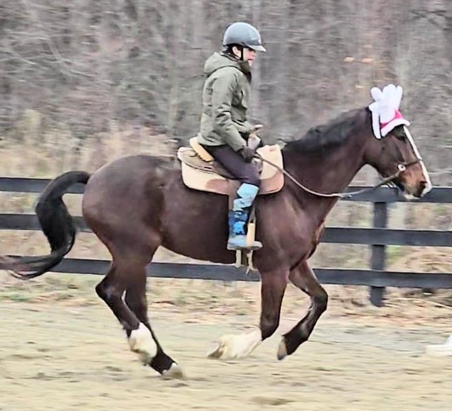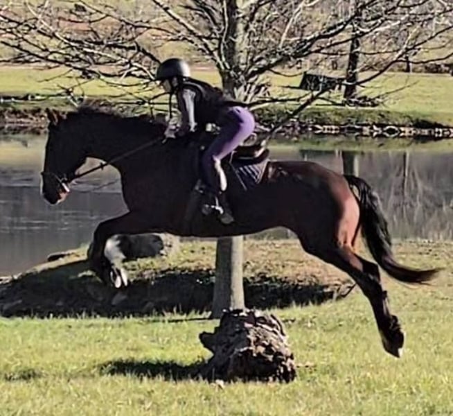 "AVAILABLE ON ONLINE HORSE AUCTION AT www DOT MagicHorseAuction DOT com BIDDING OPEN NOW thru TUESDAY | December 9TH! - BUY IT NOW AVAILABLE! *Final price will be determined on auction site* CONSIGNOR CONTACT INFO: Nicole Ingrassia 571-289-2947 LOCATION: Jeffersonton, VA "Looking for the perfect horse and didn't want to compromise? Well, now you don't have to, because Silas is the total package! *Brains* *Beauty* *Athleticism* This sporty gelding is a 7 year old simply stunning, chromed out, mahogany bay American Warmblood gelding (Clydesdale cross) standing at a lanky 16.1h with a correct, uphill build, sporty athleticism and a very quiet, agreeable, amateur friendly, laid back, sweet disposition. This sweetie has a dreamy canter, picks up his leads easily, and he has scope galore over jumps and he loves the trails. In my opinion, he is older lady safe but younger lady interesting (and yes, husband safe) and quiet enough for the whole family. While he is not a packer yet, he seems suitable for just about anyone due to his quiet and willing nature. He is shown us no spook no buck no lunge/prep and been a no nonsense kind of guy suitable for all rider levels. We have taken this gelding on trail rides, cross-country schooling, and through fire/smoke and other challenges, and he has demonstrated a wonderful disposition combined with a steady temperament and oodles of athleticism. In a simple word, Silas is so much fun! He is a chill dude and would be just as happy to live a slower-paced life too, but if you want to gallop over fences, hill top, foxhunt, or jump a course of fences, he will also be happy to comply. He has a dreamy, smooth athletic canter that is fluid and smooth like a gazelle (only a lot slower), and he rides in a simple snaffle. We have ridden him in a halter or a bridle, english or western, and he has been the same off-property as he is at home. He is soft in his mouth and not strong at all, and he has great transitions. He loves the trails and he is content to meander through the woods and cross creeks. Silas does not need to be lunged or ridden every day to maintain his composure. I can picture him as being the ultimate foxhunting horse, hilltopper, or even guest and husband/family horse as needed or wanted or he a lovely all-arounder for an amateur rider. Silas is also very smooth to ride and comfortable. His WTC are lovely and easy to sit, and he picks up the correct leads very easily. Silas is an incredible horse with an incredible disposition and amount of try. If you've been looking for that one in a million unicorn, in my humble opinion he makes the cut. Silas has no blemishes, and he is sound and healthy and not on maintenance. Silas had a recent vet check prior to the auction with clean results. He is up-to-date on dental, vaccines, coggins, deworming, and just had a fresh set of shoes put on. Silas has no vices at all and he is easy to have around, he can live in or out and gets along well with other horses. He has great ground manners and is wonderful to work around and is very polite, easy to catch, friendly, and a sweet mild-mannered gelding. He does not have reg. papers currently, but his age of 7 coming 8 has been verified by both vet & dentist, and he is eligible to be registered with American Warmblood Society if his new owner wishes. Silas comes with 1 week of free board, and he can be boarded at our farm after that time as well. We can board for the holidays. We can help with arranging shipping nationwide or to Canada. If you have any questions or interest in Silas, we encourage you to reach out: 57l2892947, thank you!