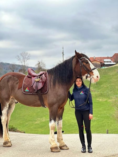 Ramses ist ein beeindruckender Clydesdale-Wallach mit enormer Ausstrahlung und einer ganz besonderen Persönlichkeit. Trotz seiner imposanten Größe ist er feinfühlig, aufmerksam und lernt außergewöhnlich schnell. Besonders auf Sprachkommandos reagiert er zuverlässig und motiviert. Er beherrscht mehrere Tricks und arbeitet sehr gerne mit seinem Menschen zusammen. Im täglichen Umgang zeigt sich Ramses freundlich, interessiert und kooperativ. Er genießt Aufmerksamkeit, klare Kommunikation und faire Führung. Unter dem Sattel bringt er Präsenz, Kraft und Energie mit und braucht daher einen Reiter mit Gefühl, Verantwortung und Erfahrung mit großen Pferden. Er ist kein Anfängerpferd, sondern ein Partner für Menschen, die das Besondere schätzen. Ramses ist seit mehreren Jahren in meinem Besitz und diese Entscheidung fällt mir sehr schwer. Er ist mein Herzenspferd, meine Leidenschaft und mein Rückzugsort gewesen. Aufgrund familiärer und gesundheitlicher Veränderungen suche ich nun einen neuen, passenden Platz für ihn, wo er gesehen, gefördert und geliebt wird. Für den richtigen Menschen ist Ramses kein gewöhnliches Verkaufspferd, sondern eine echte Begegnung – ein Pferd mit Seele, Präsenz und Tiefe.