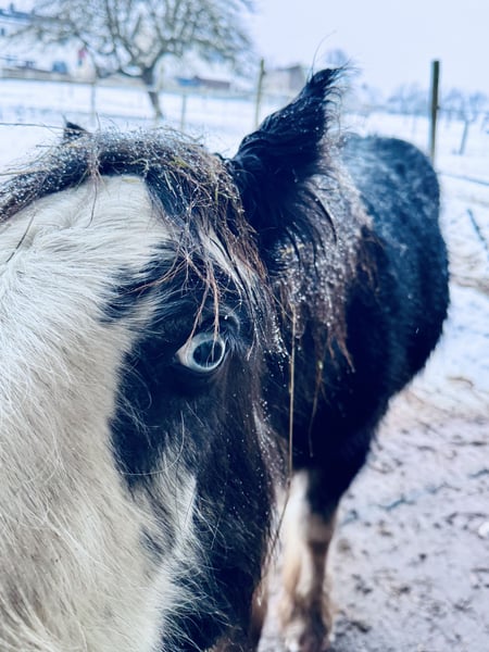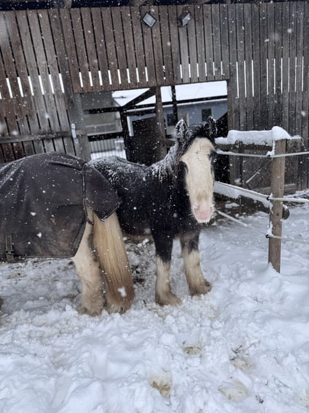 Blue Berry von der Vogelweide Geboren: 28.02.2025 Geschlecht: Hengst Farbe: Black Blagdon Vater: Blue Ocean (201510472) Mutter: Kingarvan Fancy Nancy (202310316) – Ster Beide Eltern verfügen über ein Stockmaß von über 1,46 m und stehen für Typ, Fundament und Rassetreue. Blue Berry ist im Zuchtbuch der Irish Cob Society Nederland (ICS NL) eingetragen und erhielt auf der Fohlenschau die 2. Prämie mit 145,5 Punkten – dicht an der 1. Prämie. Entwicklung & Maße Stand 09.11.2025: • 131 cm Stockmaß • 280 kg Er zeigt eine gute Entwicklung, korrekten Körperbau und wächst harmonisch in artgerechter Haltung auf. Blue Berry überzeugt durch sein ausgeglichenes Wesen. • sehr lieb im täglichen Umgang • halfterführig • kennt den Schmied und gibt brav die Hufe • verladefromm • neugierig und mutig • dabei ruhig, klar im Kopf und gut händelbar Er zeigt sich stets kooperativ und menschenbezogen – beste Voraussetzungen für Zucht oder spätere Freizeitkarriere. • regelmäßig entwurmt • altersgerecht geimpft • schmiedefromm Der Verkauf erfolgt ausschließlich aufgrund einer beruflichen Veränderung, wodurch ich seiner weiteren Ausbildung zeitlich nicht gerecht werden kann. VB im realistischen Rahmen seiner Qualität und Abstammung. Blue Berry wird nur in verantwortungsvolle und wertschätzende Hände abgegeben.
