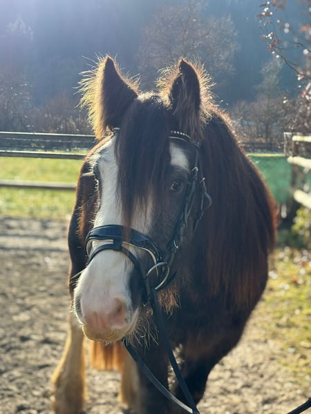✨ Irish Cob Gelding – Stunning Youngster in Unique Color Seeks New Home ✨ Breed: Irish Cob Gender: Gelding Date of Birth: May 6, 2023 Height: Currently approximately 14.2 hh – still growing, expected final height around 14.4–14.6 hh Color: Rare splash-colored brown with a beautiful blaze and four white legs – a real eye-catcher Pedigree: Fully documented Description This charming Irish Cob gelding in a rare splash-colored brown coat is not only a visual highlight but also impresses with his exceptionally sweet, calm, and human-oriented nature. He was raised appropriately in a herd environment, well-socialized, and very compatible with other horses. Training Level Despite his young age, he has been gently and age-appropriately trained. He already knows: - Saddle and bridle - Groundwork - Lunging in all three basic gaits - Rider’s weight - Walks outside the farm During walks, he is completely fearless and confident. He is familiar with trains, tractors, dogs, cats, cows, cyclists, and much more – all of which do not disturb his composure. In daily handling, he remains well-behaved, reliable, and patient. He is always calm when groomed or when around children. He willingly gives all four hooves, has been regularly introduced to the farrier, and is barefoot without issues. Character - Very affectionate and human-oriented - Calm, composed, and stress-resistant - Well-socialized & herd-safe - Ideal for families, children, and therapeutic riding Health - Regularly dewormed - Vaccinated (Influenza & Tetanus) - Healthy, without vices or abnormalities Additional Information For now, he can continue to enjoy his time in the herd. If no new home is found soon, he will be gently backed in spring, further expanding his riding possibilities. A viewing is possible at any time by prior arrangement, and transportation can be organized upon request. Has he caught your interest? I am happy to send videos or answer any further questions.