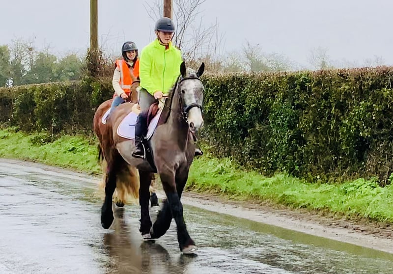 5-jähriger Irish Cob Wallach – seltener Roan – kräftiger, traditioneller Typ George ist ein 5-jähriger Irish Cob Wallach in einer wunderschönen und seltenen Roan-Farbe. Er ist ein echter, traditioneller Typ mit „viel Bein in jeder Ecke“, kräftigem Fundament und guter Knochenstärke. Ein korrekt gebautes, kompaktes Pferd mit freundlichem Ausdruck und einem ausgesprochen angenehmen Wesen. Er ist besonders unkompliziert und leicht zu reiten und eignet sich ideal als Freizeit- und Ausreitpferd, als Mutter-Tochter-Pferd oder auch für den Einsatz im Schulbetrieb. Auf dem Reitplatz ist er ordentlich gearbeitet, geht brav auf dem Zirkel und zeigt sich ausgeglichen und willig. Er vermittelt Sicherheit und ist stets bemüht, alles richtig zu machen. Auch kleine Sprünge machen ihm Spaß. Er wurde über einzelne Hindernisse sowie kleine Parcours und Geländehindernisse gearbeitet und ist hier bis ca. 90 cm mit einem Reitanfänger gesprungen. Dabei zeigt er sich ehrlich und unkompliziert, ohne übermäßig ehrgeizig zu sein. Der Schwerpunkt liegt bei ihm ganz klar auf einem vielseitigen, angenehmen Freizeitpartner. Im Gelände ist George absolut zuverlässig: • Geht alleine oder in der Gruppe ins Gelände • Verkehrssicher • Gelassen auf freiem Feld • Unkompliziert in neuer Umgebung Er bleibt ruhig und kontrollierbar und genießt entspannte Ausritte. Auch im täglichen Umgang ist er absolut pflegeleicht: • Problemlos beim Schmied • Lässt sich gut verladen • Einfach einzufangen • Brav beim Scheren • Im gesamten Handling unkompliziert George ist ein sehr menschenbezogener, freundlicher Wallach mit einem tollen Charakter. Er zeigt keine Stalluntugenden und kann jederzeit tierärztlich untersucht werden. Der Preis beinhaltet die Lieferung zu Ihrem Stall innerhalb des Vereinigten Königreichs. Umtausch ist möglich, falls Sie nicht zufrieden sind. Bitte schauen Sie sich sein Video an und rufen Sie jederzeit gerne an unter 00353 868077626 oder schreiben Sie eine E-Mail an Gertytynan@gmail.com.