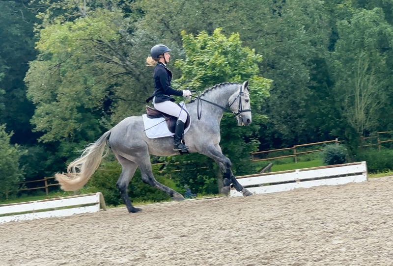 Lisbergs Prince Philip Lisbergs Prince Philip wurde am 10.04.2021 bei uns auf dem Gestüt geboren. Philip wurde um 5.16 h morgens als Rapp-Schimmel geboren. Seine Mutter Mask View Molly ist eine gut ausgebildete Connemara Stute, die bevor sie zu uns gekommen ist aktiv im Niederländischen Ponysport im Springen von der kleinsten Klasse bis 2 Sterne A und bis A in der Dressur unterwegs war. Sie führt seltenere Blutlinien in sich und verfügt über das beliebte Glencarrig Prince Blut, Ballyard Prince Blut und Rocklands Prince mit Hazy Dawn Blut! Lisbergs Prince Philip’s Vater Pattys Veuve Cosmic ist Hannoveranisch gekört, Bayrisch anerkannt und Süddeutsch gekört, er kann beste Blutlinien vorweisen und eine überdurchschnittliche Leistungsprüfung mit 8,2 absolviert! Ausserdem ist er ein erfolgreiches Turnierpony und ein braves Fahrpferd und hat inzwischen Weltweit Kinder- und Enkelkinder. Lisbergs Prince Philip wuchs sehr behütet auf unserem Gestüt erst mit seiner Mutter im Laufstall, später in einer altersgemischten Hengst- und Wallachherde. Seit er ein Fohlen ist regelmässig, entwurmt und geimpft mit Tetanus, EHV1,4( Herpes) und Pferdeinfluenza. Er war noch nie krank, Zähne wurden regelmässig kontrolliert. Philip wurde behutsam anlongiert, dann angeritten und er absolvierte im September 2025 seine 2-Tage-Kurzzeitprüfung auch Leistungsprüfung genannt mit 6,93. Das heisst er wurde im Freispringen geprüft, wurde in einer Dressuraufgabe geritten plus 1. Fremdreitertest, absolvierte am nächsten Tag einen Springparcours plus weiteren 2. Fremdreitertest. Philip ist am 22. November auf der Körung vorgestellt worden und wurde dort nicht gekört, da er mehr im Sportpony-Typ steht. Daher gibt es nun einen im Pony-End-Mass stehenden bald 5jährigen Wallach zu verkaufen. Zur Körung wurde er tierärztlich untersucht inklusive Beugeproben und Zähnen, er wurde bisher nicht geröntgt, dass kann im Rahmen einer Ankaufsuntersuchung dann der evtl. neue Besitzer machen lassen. Aktuell mehrfach gemessen 1,47 m gross. Lisbergs Prince Philip eignet sich hervorragend für den Ponysport oder für schon gut reitende Jugendliche oder zierliche erwachsene Reiter. Philip ist in der Dressur und im Springen auf dem Weg zu A, durch die Leistungsprüfung Ende September bestätigt. Er kennt ausreiten, etwas Hallensport( muss mit mehreren Reitern in der Halle noch geübt werden) kennt Waschbox, Einflechten, Solarium, Transporter- und Anhänger fahren, auch längere Strecken, Reitplatz, verschiedene Stallanlagen zum trainieren, hat keine Unarten und ist brav im Umgang und bleibt artig im Auslauf. Aktuell wartet Lisbergs Prince Philipp auf seinen Kastrationstermin, der leider wegen Krankheit des Tierarztes und Notfällen mehrfach ausfallen musste. Sollten Ihnen Lisbergs Philipp gefallen, wenden Sie sich bitte direkt an die angegebenen Nummern aus der Anzeige und geben Sie bei einer email Ihren Namen und Ihre Mobilrufnummer an- gerne können Sie uns auch direkt über Whatsapp unter 00491713415878 kontaktieren, in unserem schönen Ort funktioniert das mobile telefonieren leider nicht oder nur sehr schlecht! Das komplette Pedigree finden Sie in den Dokumenten wieder, da ehorses häufig Teile der Abstammung verschluckt. Pro Besuch auf unseren Betrieb erheben wir eine Kennenlern-Pauschale von 50€ und 70€ an Sonn- und Feiertagen müssen vorab bei Ankunft in Bar entrichtet werden! Liebe Grüsse und vielleicht bis bald - Gestüt Lisbergs ist immer eine Reise wert! Vielen Dank für Interesse! Ihr Gestüt Lisbergs