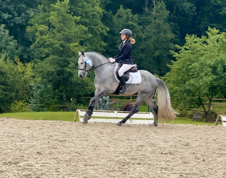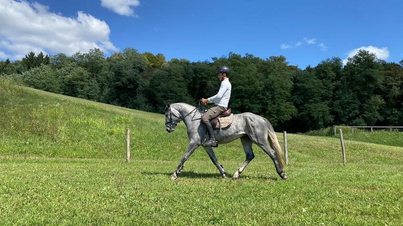 Lisbergs Prince Philip Lisbergs Prince Philip wurde am 10.04.2021 bei uns auf dem Gestüt geboren. Philip wurde um 5.16 h morgens als Rapp-Schimmel geboren. Seine Mutter Mask View Molly ist eine gut ausgebildete Connemara Stute, die bevor sie zu uns gekommen ist aktiv im Niederländischen Ponysport im Springen von der kleinsten Klasse bis 2 Sterne A und bis A in der Dressur unterwegs war. Sie führt seltenere Blutlinien in sich und verfügt über das beliebte Glencarrig Prince Blut, Ballyard Prince Blut und Rocklands Prince mit Hazy Dawn Blut! Lisbergs Prince Philip’s Vater Pattys Veuve Cosmic ist Hannoveranisch gekört, Bayrisch anerkannt und Süddeutsch gekört, er kann beste Blutlinien vorweisen und eine überdurchschnittliche Leistungsprüfung mit 8,2 absolviert! Ausserdem ist er ein erfolgreiches Turnierpony und ein braves Fahrpferd und hat inzwischen Weltweit Kinder- und Enkelkinder. Lisbergs Prince Philip wuchs sehr behütet auf unserem Gestüt erst mit seiner Mutter im Laufstall, später in einer altersgemischten Hengst- und Wallachherde. Seit er ein Fohlen ist regelmässig, entwurmt und geimpft mit Tetanus, EHV1,4( Herpes) und Pferdeinfluenza. Er war noch nie krank, Zähne wurden regelmässig kontrolliert. Philip wurde behutsam anlongiert, dann angeritten und er absolvierte im September 2025 seine 2-Tage-Kurzzeitprüfung auch Leistungsprüfung genannt mit 6,93. Das heisst er wurde im Freispringen geprüft, wurde in einer Dressuraufgabe geritten plus 1. Fremdreitertest, absolvierte am nächsten Tag einen Springparcours plus weiteren 2. Fremdreitertest. Philip ist am 22. November auf der Körung vorgestellt worden und wurde dort nicht gekört, da er mehr im Sportpony-Typ steht. Daher gibt es nun einen im Pony-End-Mass stehenden bald 5jährigen Wallach zu verkaufen. Zur Körung wurde er tierärztlich untersucht inklusive Beugeproben und Zähnen, er wurde bisher nicht geröntgt, dass kann im Rahmen einer Ankaufsuntersuchung dann der evtl. neue Besitzer machen lassen. Aktuell mehrfach gemessen 1,47 m gross. Lisbergs Prince Philip eignet sich hervorragend für den Ponysport oder für schon gut reitende Jugendliche oder zierliche erwachsene Reiter. Philip ist in der Dressur und im Springen auf dem Weg zu A, durch die Leistungsprüfung Ende September bestätigt. Er kennt ausreiten, etwas Hallensport( muss mit mehreren Reitern in der Halle noch geübt werden) kennt Waschbox, Einflechten, Solarium, Transporter- und Anhänger fahren, auch längere Strecken, Reitplatz, verschiedene Stallanlagen zum trainieren, hat keine Unarten und ist brav im Umgang und bleibt artig im Auslauf. Aktuell wartet Lisbergs Prince Philipp auf seinen Kastrationstermin, der leider wegen Krankheit des Tierarztes und Notfällen mehrfach ausfallen musste. Sollten Ihnen Lisbergs Philipp gefallen, wenden Sie sich bitte direkt an die angegebenen Nummern aus der Anzeige und geben Sie bei einer email Ihren Namen und Ihre Mobilrufnummer an- gerne können Sie uns auch direkt über Whatsapp unter 00491713415878 kontaktieren, in unserem schönen Ort funktioniert das mobile telefonieren leider nicht oder nur sehr schlecht! Das komplette Pedigree finden Sie in den Dokumenten wieder, da ehorses häufig Teile der Abstammung verschluckt. Pro Besuch auf unseren Betrieb erheben wir eine Kennenlern-Pauschale von 50€ und 70€ an Sonn- und Feiertagen müssen vorab bei Ankunft in Bar entrichtet werden! Liebe Grüsse und vielleicht bis bald - Gestüt Lisbergs ist immer eine Reise wert! Vielen Dank für Interesse! Ihr Gestüt Lisbergs