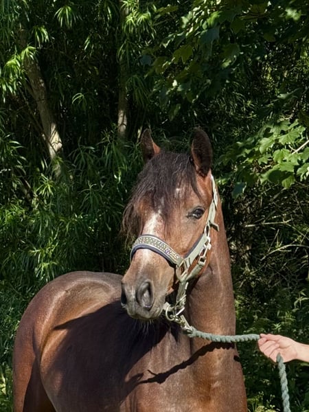 Refined and promising Connemara mare seeking a new purpose. Borghorsts Tallulah was born here at the stud in May 2023. She received a foal premium and was raised in a herd of mares on Holsteiner pastures. Tallulah will grow to approximately 14.2 hh. She is halter-trained and will be gently longed over the winter in preparation for her presentation at the mare show in spring 2026. She displays a ground-covering canter and has a lot of talent for free jumping. Her walk and trot are also very relaxed and expressive. You are welcome to visit Tallulah at our stud. Please feel free to contact us if you're interested in one of our ponies. HWSd n/n. Vaccinated, regularly dewormed, and hoof care up to date.