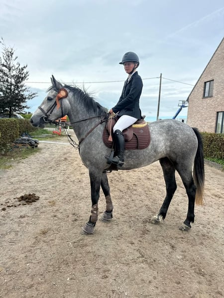 🚀Super well-behaved large Connemara mare – Beauty 🚀 Beauty is truly a dream horse to work with! She has a golden character, both in handling and while riding. Anyone can ride her, young and old, and she is also exceptionally suitable for adults given her size. She is 4 years old and 1.56m tall. 🌿 She loves going out on trails and in the woods. She takes the lead without any problems, is absolutely bombproof, and walks over a bridge next to the highway, even with a lot of noise. 🏆 At competitions, she proves her talent: she was flawless and problem-free in her very first competition! Currently, she jumps 80 cm, but at home, she shows that she has much more potential. She has a beautiful jumping technique, is easy to ride to the jump, and is not fazed by anything – not even what is underneath the obstacles. 🐴 In handling, Beauty is a real sweetheart: she gets along well with other horses and is definitely not a dominant type. Loading is no problem at all – she almost walks on by herself in both the trailer and the truck. ✅ On 19/09, she was fully clinically and radiographically examined. In short: Beauty is a fantastic horse with a great character, a top choice for anyone looking for a reliable, pleasant to ride, and versatile horse! 📞 More info or videos? Call or WhatsApp: 0032 475 68 22 43 👉 Check our website for videos, we also have multiple course videos!