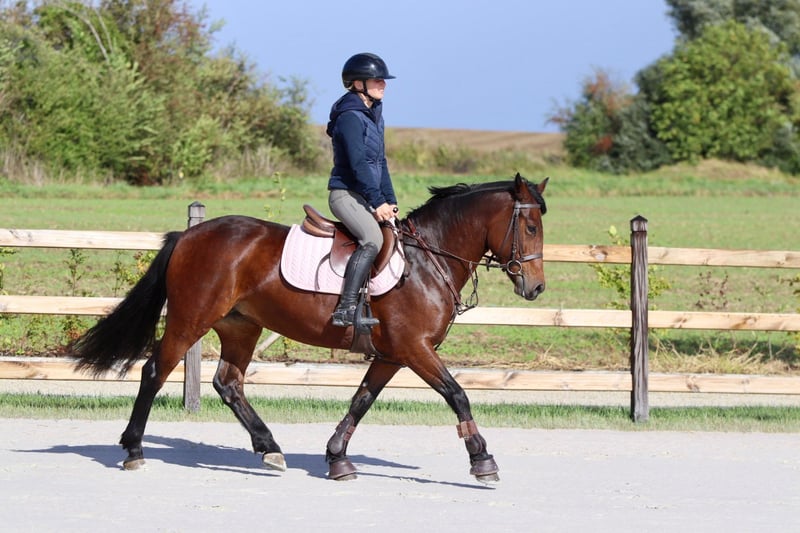Hilltop Una ist eine 5-jährige Connemara-Stute von 1,46 m. Sie ist kräftig und breit gebaut, wodurch sie nicht nur ideal für Jugendliche, sondern auch perfekt für Erwachsene geeignet ist. 🐴 Charakter & Umgang Una hat ein goldenes Wesen: superlieb, anhänglich und immer bereit für neue Abenteuer. Sie geht gerne mit auf Ausflüge, ist brav im Wald und kann problemlos von jüngeren oder weniger erfahrenen Reitern geritten werden. 🏆 Sport & Vielseitigkeit Momentan springt sie problemlos Parcours von 80 cm im Wettkampf und hat definitiv das Potenzial, höher zu springen. Sie ist vielseitig einsetzbar: im Freizeitbereich, sportlich oder als feine Familienpony. 📜 Zucht & Abstammung • Vollständiges Connemara-Stammbuch (Class 1, N/N) • Abstammung: Vater Maam Hero, bekannt für Nachkommen mit Springtalent, korrekten Gängen und fantastischem Charakter • Eine echte Perle im Aussehen und genetisch sehr gut gezüchtet ✅ Gesundheit Am 19.09.2025 wurde Hilltop Una vollständig klinisch und röntgenologisch ohne Beanstandungen genehmigt. 🚛 Praktisch • Sie lässt sich super einfach transportieren • Kommt auf der Weide hervorragend mit anderen Ponys zurecht Weitere Informationen? +32475682243 Für Videos fragen Sie gerne nach unserer Website.