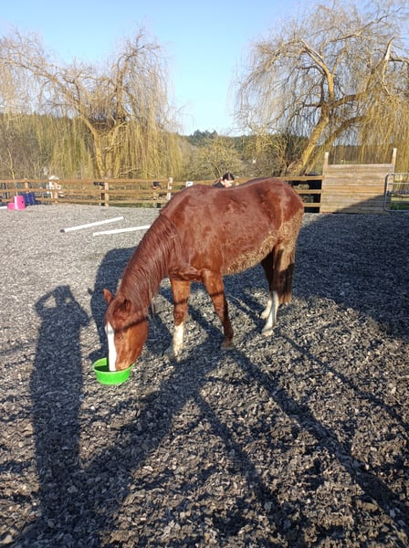 Leider werden wir ihm nicht gerescht, nicht mit der Zeit um ihn weiter richtig zu fördern, noch hat er den richtigen Ansprechpartner in der Herde. Er zählt eher zu den "jungen Wilden" und die anderen haben lieber ihre Ruhe. Die Entscheidung fällt uns nicht leicht, aber es passt einfach nicht für ihn und wir kommen so nicht weiter. Er ist regelmäßig dem Hufschmied vorgestellt und 3 Fach geimpft. Bei ernsthaftem Interesse sind wir gerne bereit über den Preis zu sprechen, wobei er nicht verschenkt wird. Er ist ein Conemara Reitpony Mix. Dienstag werden auch die Impfungen noch mal aufgefrischt.