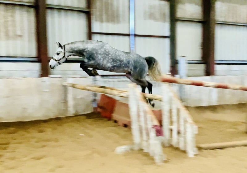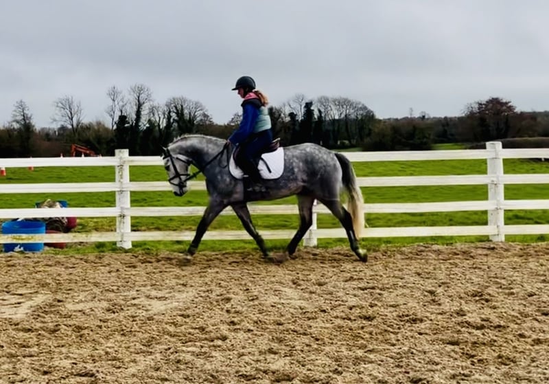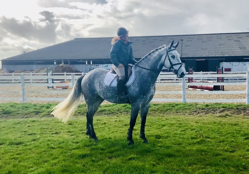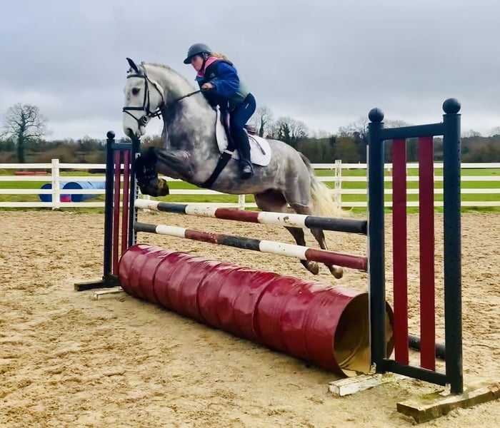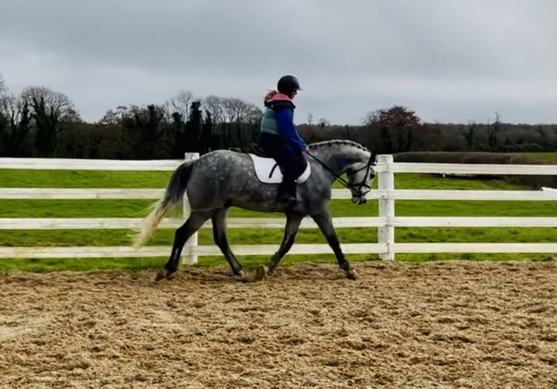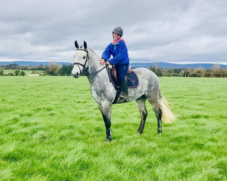 Nemo is a 5 year old 15.2hh purebred dappled grey Connemara gelding with a very eye-catching presence and quality type. He would be best suited to an experienced home, ideally someone who enjoys bringing on a young horse and developing his full potential. Nemo has the ability and attitude to become a serious competition horse and has the scope to progress into the higher classes. He has jumped up to 1m here and loose schools over 1.20m. He is quiet in nature, loves to jump, always approaching his work with enthusiasm and a willing attitude. He rides in a soft snaffle mouth and naturally carries himself in a lovely outline. Nemo has three good paces and is a straight, correct mover. He is particularly enthusiastic about jumping and cross-country and takes everything in his stride while always trying to please his rider and keeps a soft contact. He is eager to work and shows a fantastic work ethic every day. Nemo hacks out confidently both alone and in company and is quiet and sensible in open spaces. He is very straightforward to manage and is easy to shoe, box, catch, clip and ride in traffic. Nemo has no stable vices and is open to any vetting. He comes with lovely breeding by Ballygarris Highflyer out of Hillview Fame. This talented and genuine gelding should make an ideal partner for a competitive home looking for a quality Connemara to produce. Price includes delivery to your yard in the UK and an exchange option if you are not happy. For more information please call anytime on 00353 868077626 or email gertytynan@gmail.com.