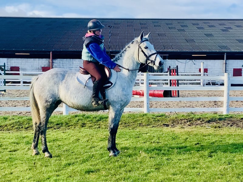 🌟 For Sale: Lucy – 5-Year-Old Irish Draught x Connemara Mare (15.1 hh) 🌟 Lucy is a wonderful mare – inside and out. She is a nearly 5-year-old Irish Draught x Connemara grey mare with a height of 15.1 hands (1.55 m). A truly beautiful model with a gentle eye and solid conformation. Calm, straightforward, and willing – exactly the kind of horse you wish for in your stable. ✨ About Lucy • Age: 2021 • Height: 15.1 hh • Breed: Irish Draught x Connemara • Color: Grey • Sire: Irish Draught stallion Cloonacauneen Grandpa Lucy is exceptionally easy and calm to ride. She is ridden effortlessly by beginner riders at our yard and provides her riders with great confidence. She has three beautiful, balanced, and straight basic gaits and a very comfortable seat. 🏇 Training & Skills • Ridden over colorful poles, banks, ditches, and small cross-country jumps • Very well-behaved in the terrain, both alone and in a group • Reliable in traffic and calm in open spaces • Displays the same friendly, relaxed character at new locations as at home • A loving, eager to learn, and cooperative mare Lucy always aims to please her rider and has a pleasant, dependable nature. 🧰 Suitable Uses Ideal as: • First mare for mother and daughter • Riding school horse • Horse for beginners or ambitious teenagers • Stepping-up horse for riders transitioning from smaller ponies 🧰 Handling & Character Lucy is straightforward in every respect: • Easy to shoe, load, lead, and ride, and absolutely well-behaved in traffic • No stable vices • Can be inspected by a veterinarian at any time 📦 Included in the Price • Delivery directly to your stable within the United Kingdom • Exchange possible if you are not satisfied Lucy is an honest, loving mare with great potential and a truly rare character. Scroll down to see her video, and feel free to contact us anytime. 📞 Phone: +353 86 807 7626 📧 Email: gertytynan@gmail.com
