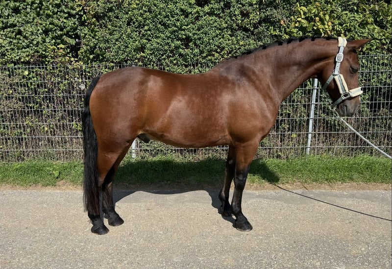 Wegen Umstieg auf Großpferd verkaufen wir unseren 9 jährigen irischen Connemara Wallach Aghascashel Rubi. Rubi ist sehr gut ausgebildet. Dressur, Springen, Gelände, Longe, Freispringen, Führmaschine - je mehr Abwechslung umso besser. Er kennt (fremde) Hallen, Plätze und hat Turniererfahrung. Die letzten 4 Jahre lief er bei uns im Erwachsenen-Kind-Gespann. Aufgrund seiner Größe und Statur deckt er sehr gut ab und ist auch für Erwachsene interessant. Rubi ist kein reines Kinderpony. Er braucht Konsequenz und möchte geritten werden. Aktuelle Haltungsform: Paddockbox mit täglichem Koppel-/Paddockgang in Gruppe. Ältere klinische AKU liegt vor. Bei ernsthaften Interesse gerne melden. Für ein Probereiten werden zur Schonung des Pferdes 30€ veranschlagt, die beim Kauf verrechnet werden.
