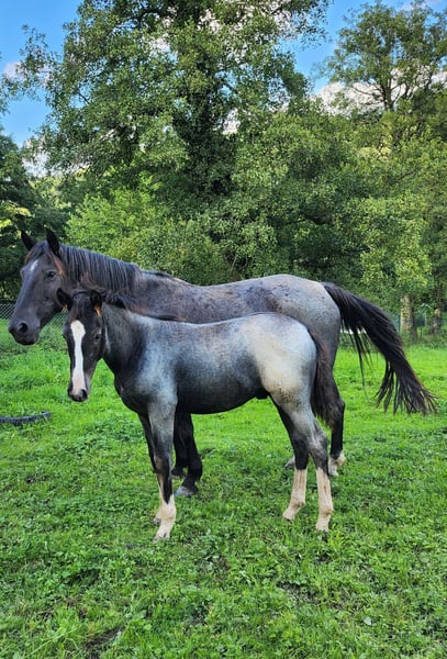 ANNONCE DE COUVERTURE ! !! Nous vous proposons un étalon Overo Criollo de première classe pour vos juments en semence congelée, semence fraîche et monte naturelle. RÉDUCTION jusqu'au 15.02.2025 pour 700 €. Surrender est actuellement l'étalon Criollo le plus performant dans les disciplines Reining, Ranch Riding et Ranch Rail. Il maîtrise toutes les manœuvres les yeux fermés et est extrêmement performant, absolument concentré et incroyablement désireux d'apprendre. Même les plus petits de notre famille peuvent panser, guider ou monter Surrender sans problème. Il fascine les gens et les animaux par sa nature affectueuse. Il transmet à ses descendants non seulement son physique correct et ses belles variations de couleurs, mais aussi son caractère incroyablement calme et nerveux. Les dernières photos montrent un petit extrait de sa descendance. En ce qui concerne les couleurs, tout est possible chez Surrender, qu'il s'agisse d'Overo de toutes les couleurs, de pie de toutes les couleurs, de Grullo (fauve souris), de Blue-Roan (Moro), de cheval noir, de bai, de pie de Tieger et bien d'autres encore. Nombreuses victoires et classements en reining, ranch riding et ranch rail. Finaliste du German Open ! Notre Surrender ne peut PAS engendrer de renards ! 5 Panel test génétique n/n N'hésitez pas à venir nous voir pour vous convaincre de notre merveille colorée ! www.wmf-criollozucht.de 015120182892 Madeleine Fleckenstein Entraîneur EWU d'équitation western