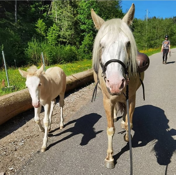With a heavy heart, I am looking for a loving new home for our 10-year-old Criollo mare, "Calfiao Calida," due to my pregnancy. She has been with us in a paddock trail for the past 8 years and has given us wonderful foals. In between, she has had the opportunity to learn a few things. She reliably carried me on numerous rides through varied terrain. She has participated in Centered Riding courses and has been trained using Linda Tellington Jones methods. Additionally, she has been introduced to clicker training and some groundwork and lunging work in a bitless bridle. Nonetheless, I am selling her as a riding horse, as she has primarily been a broodmare with us and still lacks the necessary routine. She has a very gentle and fearless temperament, which makes me think she could also be well-suited for horse-assisted work after appropriate training. She would probably also make a wonderful trail riding horse. As a broodmare, I can also see her continuing in that role; she has always been a great mother here. She has been healthy throughout the years. She is barefoot and has been ridden exclusively bitless so far. I am very much looking forward to inquiries about this beautiful mare and am curious to see what the future holds for her.