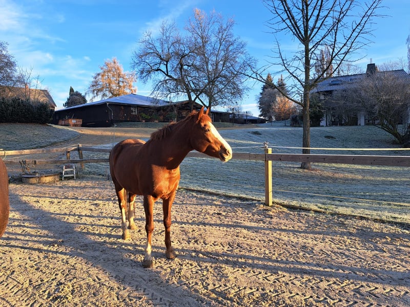 Polocross Pony for sale as a leisure horse. We are looking for a new home for our polo mare Canica as a recreational riding horse. Canica is 12 years old and arrived in Germany from Argentina in 2022. Unfortunately, she isn’t particularly fond of polo – she loves “normal” riding even more. Therefore, we are seeking a new home for her without polo activities! As is typical for her breed, she is very easy to handle and well-behaved under saddle. She is used to being outside 24/7 and has also experienced stall life with regular access to paddock or pasture.