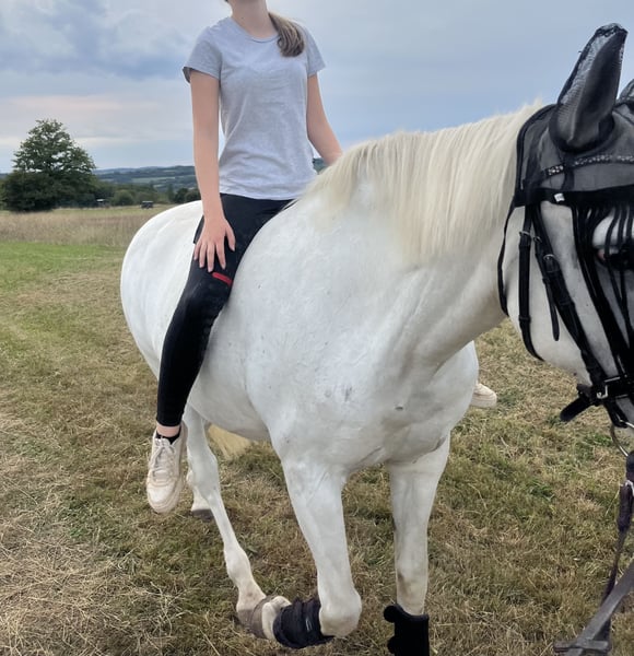 Sehr schweren Herzens müssen wir uns von unseren sehr lieben und ehrlichen Stute trennen. Sie hat ein Stockmaß von ca 1,60 m. Letztes Jahr hatte sie einen Sehnenschaden,der aber ausgeheilt ist. Aktuelle Röntgen- sowie Ultraschallbilder liegen vor. Unsere reiterlichen Ambitionen passen leider nicht mehr zu dem, was „Fanti“ leisten kann. Wir wünschen uns für sie einen liebevollen Menschen,für den das Reiten nicht im Vordergrund steht,sondern der den Schwerpunkt auf Bodenarbeit oder gemütliche Ritte ins Gelände legt. Alleine geht sie nicht so gern vom Stall weg,sie geht lieber mit einem anderen Pferd als Partner los. Sie ist eine totale Lebensversicherung beim reiten und im Umgang ein wahrer Schatz. Sie ist im Sommer 24/7 Koppel gewöhnt und im Winter Boxenhaltung mit täglichen Auslauf. Wir könnten uns aber auch sehr gut eine Offenstallhaltung für sie vorstellen. Fanti ist in ihrer Stutenherde sehr verträglich und geht dem Ärger lieber aus dem Weg. Ein Sattel kann gegen Aufpreis mit erworben werden. Platz definitiv vor Preis und keine Händler!!! Bei ernsthaften Interesse,können sie sich gerne melden und weitere Fragen können beantwortet werden.