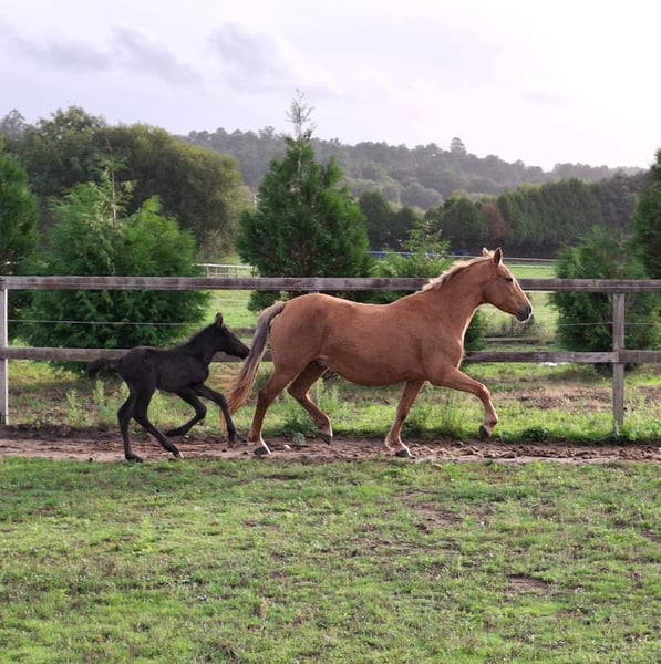 Sprzedam klacz o wspaniałym temperamencie, jeżdżoną z wysokiej klasy ćwiczeniami szkoły jazdy. Klacz jest w ciąży z młodym źrebięciem, które niedawno się urodziło. Rasy wyjątkowe, na zdjęciu ojciec – konik czarnej maści, czystej rasy hiszpańskiej.