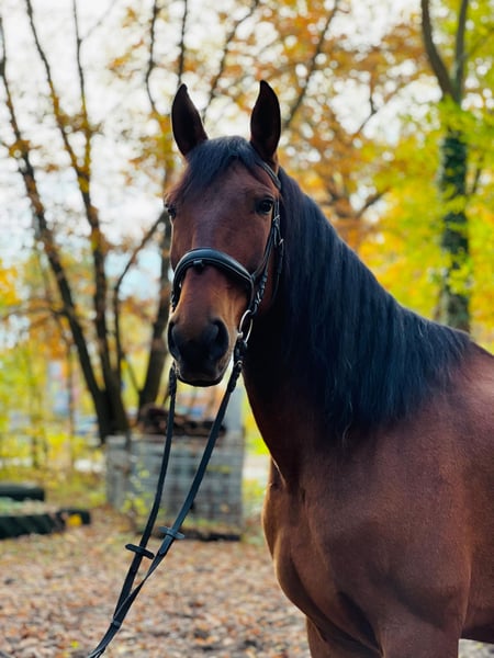 Bruja is a lovely, people-oriented mare who enjoys cuddling and shows great affection in daily handling. She is very attentive, reacts sensitively to her environment, and needs an experienced handler who can provide her with security. She is familiar with groundwork and works with motivation. When lunged, she displays a lot of temperament. According to her previous owner, Bruja has been ridden and driven. With us, she was under saddle for nearly two weeks, as she was intended for our riding school. However, we quickly realized that rider changes are not suitable for her. She appears more spirited and somewhat more uncertain than during the trial ride. Nevertheless, we believe that with patience, trust, continued muscle development, and consistent training, she has the potential to become a reliable riding horse. We could also see her as a broodmare. She is accustomed to turnout in an open stable, pasture, paddock, or even staying in a box overnight. Feel free to contact us to get to know her better.