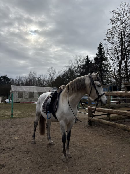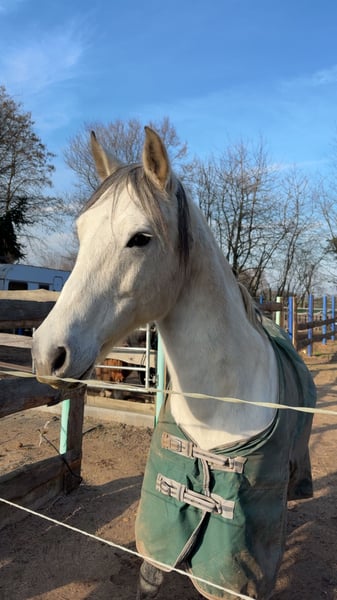 Cruzado is looking for his forever family 🐴 - will turn 11 years old - approximately 1.50 meters tall - needs an open stable with companions - has a mild hay dust allergy - has a wonderfully sweet temperament - knows and loves children and dogs - is sensitive, a bit unsure, and cautious - requires a confident, steady handler - is not suitable for beginners - has been trained in a varied manner - is very affectionate and attentive to humans - wishes to be challenged and further developed - located in 64331