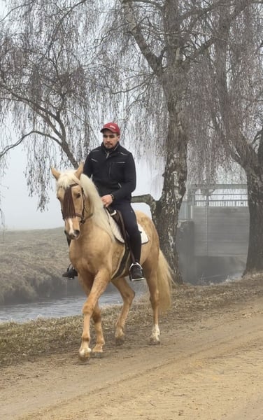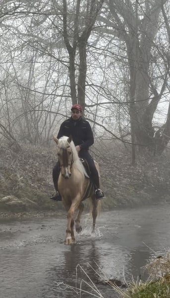 Cruzado Wallach – bald 4-jährig • Stockmaß ca. 155 cm • sehr menschenbezogen & ausgeglichen • altersentsprechend angeritten • super brav im Umgang & unterm Sattel • kennt Halle, Platz & Gelände • geht alleine & in der Gruppe ins Gelände • verkehrssicher (Traktoren), kennt Wasser & Brücken • meistert neue Situationen souverän • kennt Bodenarbeit & Zirkuslektionen (z. B. Hinlegen) • barhuf, geimpft • aktuelle AKU ohne Befund liegt vor Mögliche Einsatzbereiche: Dressur, Working Equitation, Ausritte, Boden- & Freiarbeit. Seguirillia ist ein wahrer Schatz. Er macht sowohl bei der Arbeit vom Boden, als auch vom Sattel aus, sehr viel Freude! Er ist stets motiviert und will gefallen. Er wird mal ein ganz toller Freizeitpartner, dem alle Sparten der Reiterei offen stehen. Weitere Infos gerne auf Anfrage. Ein persönliches Kennenlernen ist selbstverständlich möglich.