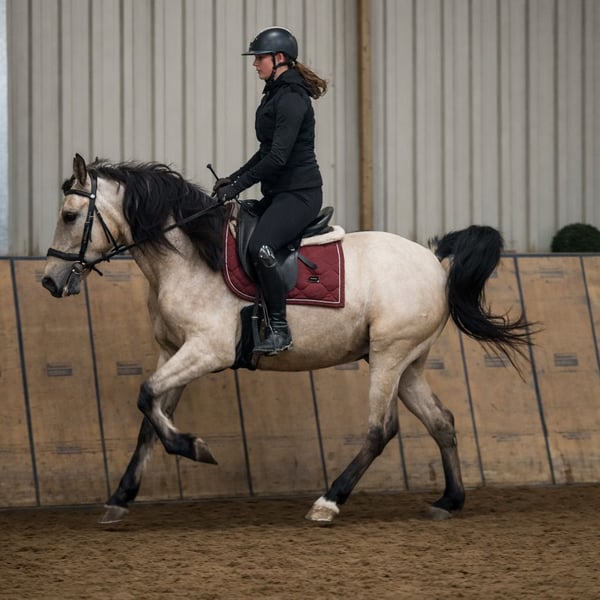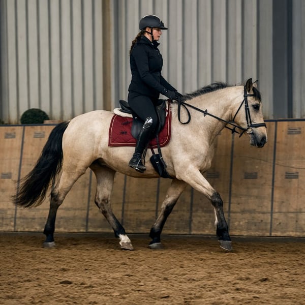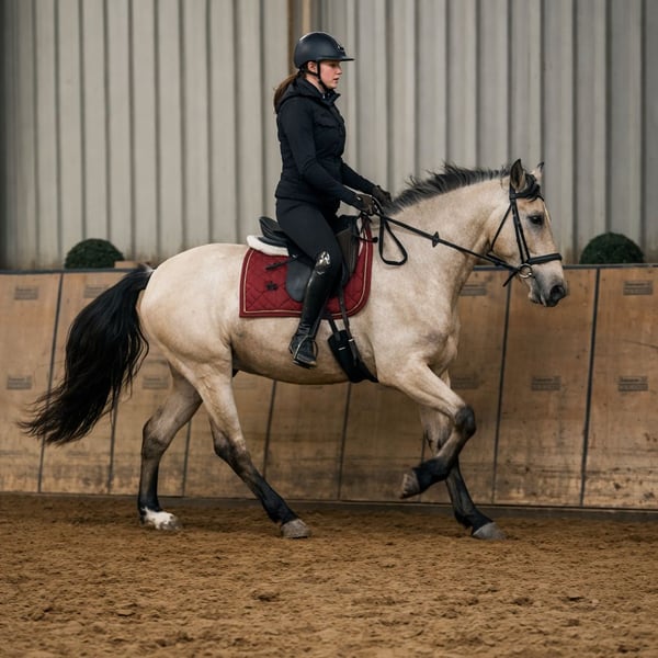 Name: Capricho Breed: Crossbred Gender: Gelding Date of Birth: September 2, 2021 Age: 5 years Height: 16.1 hh Color: Buckskin Pedigree: Without pedigree documentation Temperament: People-oriented, reliable, patient, curious, eager to learn, intelligent Training/Suitability: Well-ridden, dressage, leisure riding, working equitation, baroque riding, suitable for children Trail Experience: Trustworthy, fearless, resilient, calm, capable both alone and in a group Health: Dewormed, vaccinated, barefoot, eczema-free, teeth checked Stabling: Box stall, paddock, open stall Special Features: Very comfortable rider, good basic gaits, farrier- and loading-friendly, herd-compatible Please note that these characteristics are based on our personal assessment and do not constitute guaranteed traits. Price: €11,900 (gross price) Have we piqued your interest? To give you a better impression of Capricho, we would be happy to send you his riding video. Of course, we are available for a detailed description of the horse, personal consultation, and to answer all your questions by phone. Feel free to contact us anytime via WhatsApp message or call us at: +49 151 19487595 Our telephone hours are daily from 7:00 AM to 1:30 PM and from 8:00 PM onwards. We look forward to hearing from you! A clinical or radiological purchase examination can be performed by your veterinarian at your convenience. Capricho can be delivered safely and comfortably to his new home. We handle all necessary preparations and transportation so that your new horse arrives stress-free, well cared for, insured, and in good health. Currently, we offer a carefully selected range of horses for sale. With us, you are sure to find your dream horse. Visit us also on our homepage: www.marvinsroyalhorses.de. Dear customers, we are happy to introduce you to our horses. You are welcome to lead, groom, saddle, longe, do ground work, and try riding in the indoor arena, on the riding area, or in the field to get to know your new family member better. This costs €40 per horse, with each additional horse €30, and will be refunded upon purchase. Our address: Ferdinand Grube 50 53577 Neustadt-Wied Google Maps: marvinsroyalhorses