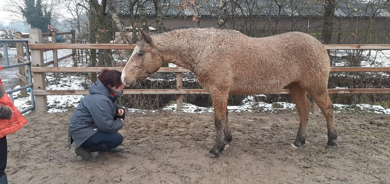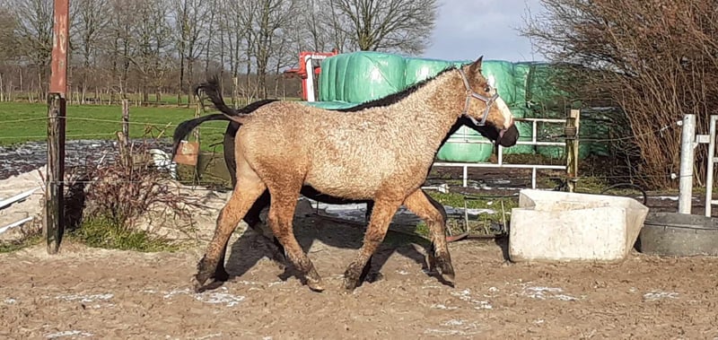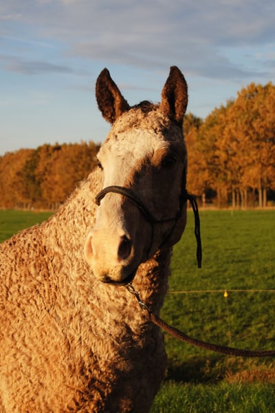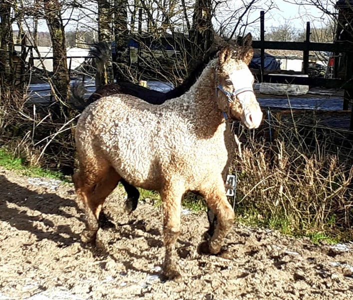 *Heavenlysmile’s Mike* Wer ist auf der Suche nach einem einzigartigen Curly-Hengst?! Oder ein wunderschone Wallach ;-) Mike ist reinerbig KRT 25 (homozygot getestet). Er besitzt Stammbaum-Papiere und ist Pennal5 frei getestet. Seine Fellfarbe, Falbe Overo und die blauen Spots in seinen Augen sind ein echter Eyecatcher. Er wird +1.50, hat einen tollen Körperbau, Charakter und sehr gute Bewegung. Für die Zucht wäre er super geeignet sowie eine Rarität, da er völlig neues Blut nach Europa bringt und seine Fohlen aufgrund seines extrems immer curly mit locken werden. Auch als Freizeitpferd, als Reitpferd oder für die Kutsche kann er gut eingesetzt werden. Mike ist ein Versprechen für die Zukunft und liegt mir besonders am Herzen. Der einzige Grund, warum wir Mike zum Verkauf anbieten, ist, dass wir seine Halbschwestern haben. Mit Wallachen und trächtigen Stuten ist Mike sehr ruhig <3 Bei Interessen, dürfen Sie sich gerne bei mir melden - ich freue mich! Ich würde gerne wissen, was Ihre Pläne für ihn sind und ob Sie ihn als Hengst oder als Wallach behalten möchten. Wir züchten seit 11 Jahren Curly Horses. Unser Ziel ist es, ein sehr freundliches und vielseitiges hypoallergenes Pferd zu züchten. Das ist für Jung und Alt geeignet, für Freizeit und Spitzensport! Wir bieten allen unseren Tieren die bestmögliche Pflege, mit den richtigen Impfungen und rechtzeitiger Hufpflege. Unsere angegebenen Preise verstehen sich exklusive Mehrwertsteuer, Inspektionen und Transportkosten. Wenn Sie weitere Informationen wünschen oder Fragen haben, schreiben Sie mir gerne eine Nachricht!