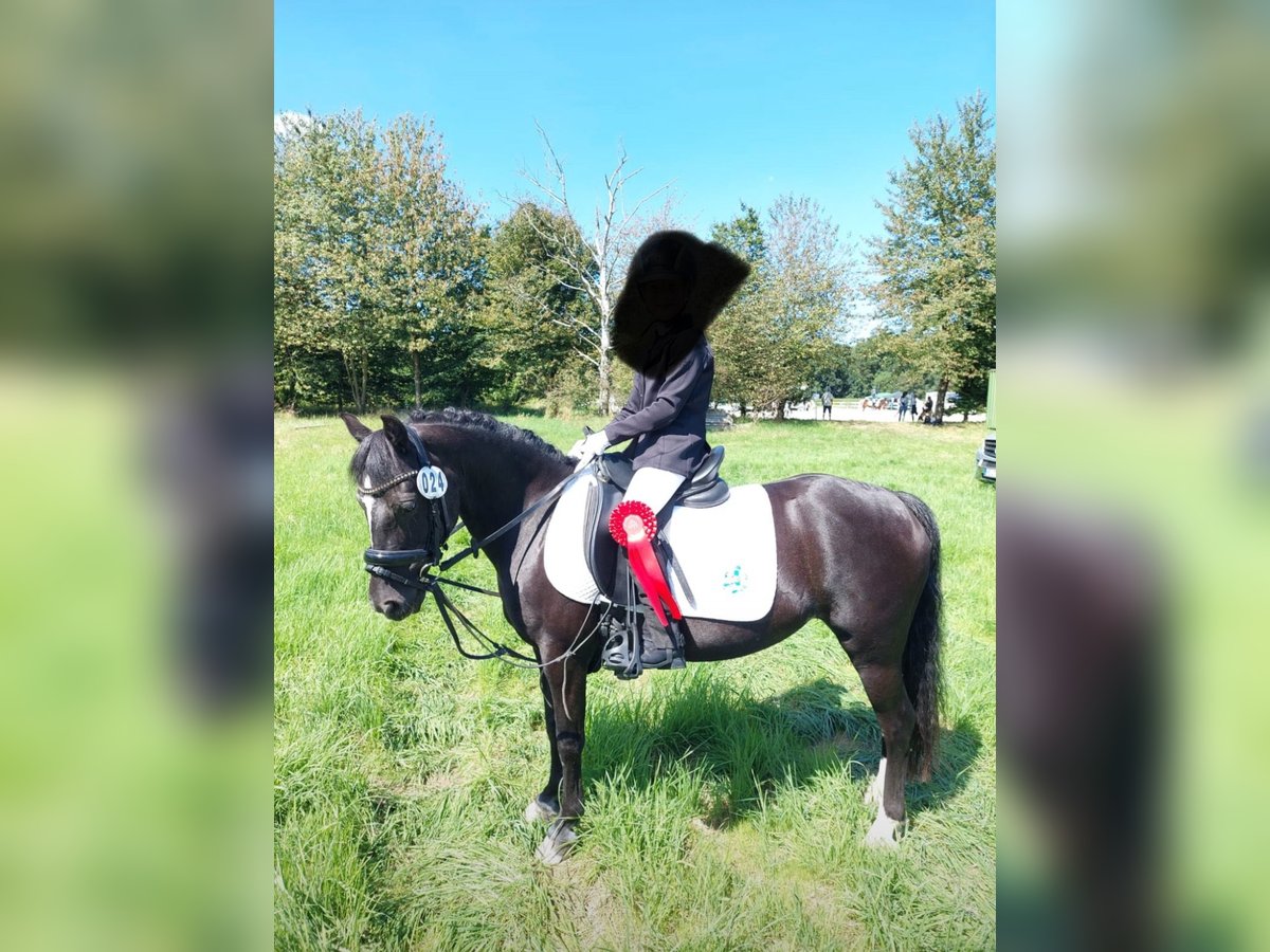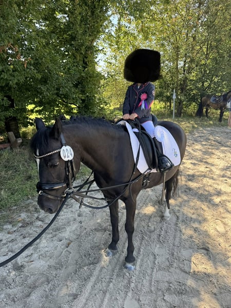 Zum Verkauf steht unsere charmante Dartmoor-Stute Daisy, geboren im Jahr 2006, die mit ihrem freundlichen Wesen und ihrer ruhigen Art begeistert. Mit ihrem eleganten Rapp-Fell und einem Stockmaß von 124 cm ist sie die perfekte Begleiterin für sowohl Reitanfänger, als auch Reiter, die ihre ersten Erfahrungen im Turniersport machen möchten und dafür ein zuverlässiges und gut gerittenes Dressurpony suchen. Daisy überzeugt durch ihre angenehme Grundgangart, ist leicht zu sitzen und stets brav bei der Sache. Sie ist gut ausgebildet und sehr fein im Maul. Dank ihrer robusten Konstitution ist sie auch für Reiter, die ihre ersten Schritte im Dressursport machen möchten, bestens geeignet. Daisy ist charakterlich ausgeglichen, freundlich im Umgang und lässt sich sowohl an der Hand als auch unter dem Sattel gut führen. Sie ist regelmäßig tierärztlich betreut, frei von bekannten Krankheiten und bestens gepflegt. Daisy bekommt bei uns nur nasses Heu, da sie von staubigem Heu anfängt zu husten. Es muss nicht bedampft werden oder ähnliches, „abwaschen“ reicht. Sie kann sowohl auf Stroh als auch auf Späne stehen. Bei uns steht sie auf Späne, da sie ganz Pony, sonst zu viel frist. Im Sommer geht sie alleine, als auch in der Herde auf die Wiese. Hufschmied, Tierarzt oder Verladen ist alles kein Problem! Daisy ist ein ideales Einsteigerpony mit einem Herz aus Gold. Für weitere Informationen oder einen persönlichen Eindruck stehe ich gerne zur Verfügung.