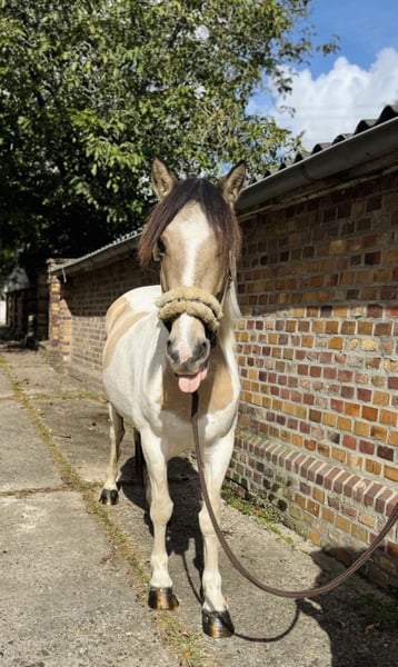 Porcelain-checked mare with Dartmoor papers, 5 years old, seeking a loving home. Name: Betty Breed: Dartmoor Pony Color: Beige and white pinto Height: approximately 14.1 hh Age: 5 years Gender: Mare The beautiful Dartmoor mare Betty is a real eye-catcher and impresses with her gentle, reliable nature. Character: * Sweet, dependable, and fearless * Initially a bit shy and needs time to build trust * Forms a close bond with her handler through patience Special features: * Barefoot and absolutely easy-going with the farrier * Loadable and well-behaved in daily handling * Ideal for leisure riders looking for a sensitive and loyal partner For Betty, I am looking for a caring home where she can take her time to settle in and where her gentle nature is appreciated. Reinings videos and additional photos are available. If interested or if you have any questions, please feel free to contact me. To avoid riding tourism, I kindly ask for a fee of 30 euros for a trial ride.
