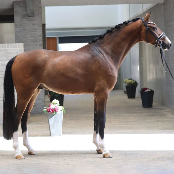 Verkauft an den Höchstbietenden am Donnerstag, den 23. um 20:30 Uhr (UTC +02:00) Weitere Details, Röntgenaufnahmen, Videos und die Möglichkeit, direkt auf unserer Website zu bieten: https://hesselhoej.dk/en/auction/sobbakehus-dry-martini/ Eleganter Top-Dressur-Hoffnungsträger mit herausragendem Pedigree Dry Martini vereint modernen Typ, exzellenten Bewegungsablauf und eine starke, bewährte Mutterlinie mit lizenzierten und Premium-Hengsten wie Hesselhoej Double Up, Hesselhoej Gnags und Sobakkehus First Mover. Die Familie umfasst zudem Spitzen-Sportpferde wie Søbakkehus Miss Malfoy, Dänemarks DWB-Hengst des Jahres 2024 und Siegerin des dänischen Nachwuchspferde-Championats für 4-Jährige im Jahr 2025, sowie Søbakkehus Maude, Siegerin des dänischen Nachwuchspferde-Championats für 5-Jährige und Finalistin bei der WCYH. Sein Vater, Hesselhoej Donkey Boss, war Champion-Hengst in DWB, gewann sein Leistungstest und ist heute äußerst erfolgreich als Zuchthengst tätig. Dry Martini präsentiert sich als elegante, moderne Dressurhoffnung mit starker Ausstrahlung, einem feinen Kopf, schönem Hals und ausgeglichener Konformation. Seine Gänge sind elastisch, raumgreifend und natürlich ausgeglichen, mit gutem Rhythmus und Flexibilität. Sein Schritt ist von herausragender Qualität. Er ist im täglichen Umgang sehr lieb, leicht zu handhaben und eine Freude im Training. Er ist gut an eine professionelle Routine gewöhnt, inklusive regelmäßiger Nutzung des Pferdewalkers, Paddocks und Wasserlaufband, was seine Entwicklung und sein Wohlbefinden fördert. Mit seinem Pedigree, seiner Rittigkeit und Qualität bietet er hervorragendes Potential für den Spitzensport im Dressurviereck. Preis ohne 25 % dänische Mehrwertsteuer.