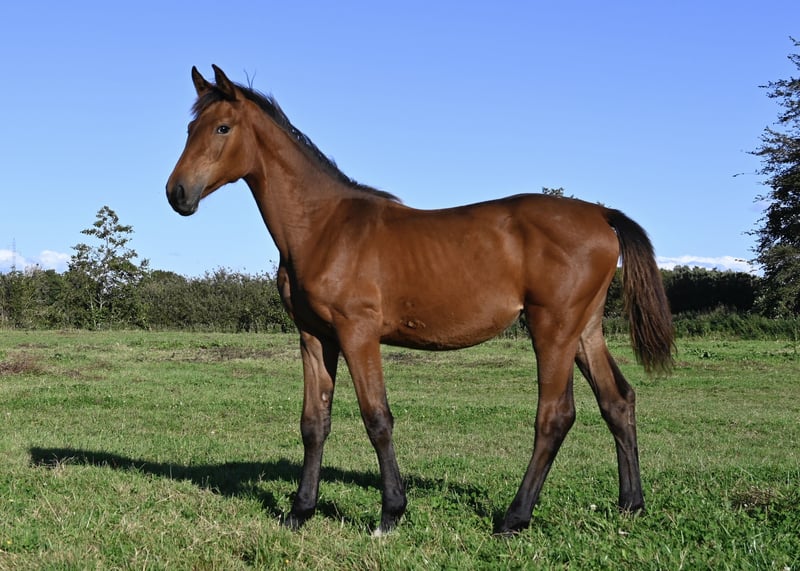 Fantastic filly by Chaloubino/Canabis/Baloubet du Rouet. The dam is Cadouet, whose dam is a sister to Chacoon Blue’s dam. Cadouet has already produced a licensed stallion herself. Her siblings Winibishi Caloudina and Chinoubet PS have both competed at 160 cm, and Carloumino PS has reached 155 cm level. One of Cadouet’s full siblings produced the 150 cm horse Xaman. The siblings of Cadouet’s mother, has produced numerous successful sports horses and approved stallions. Cadouet is in foal to Carrera for 2026.