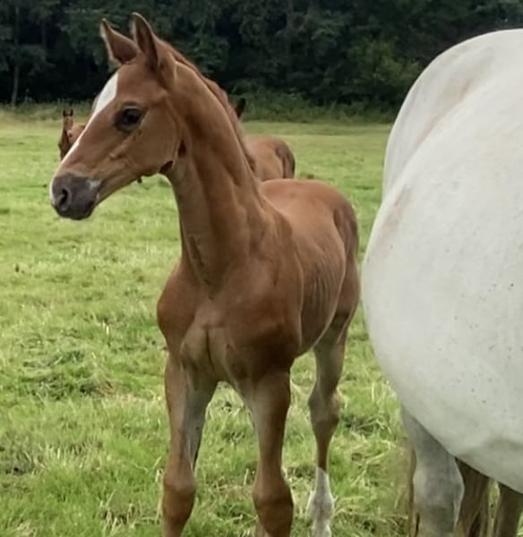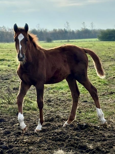 Chaccothage Blue / Kannan / Carolus / Major de la Cour: Stute, geboren 2024. Die Mutter, Morgana, stammt aus der leistungsstarken BWP-Mutterlinie Nr. 11, die zahlreiche internationale Springpferde und lizenzierte Hengste hervorgebracht hat. Ihre Urgroßmutter ist die legendäre Opaline des Pins, Mutter von fünf lizenzierten Hengsten, die auf Grand-Prix- und Olympianiveau erfolgreich waren: - Jus de Pomme (doppelte Olympiasieger) - Quintus (Olympische Spiele) - Richebourg (Pferd des Jahres 2003) - Shogoun (GP-Sieger bei den Weltmeisterschaften in Genf) - Trésor d’Opaline (Olympische Spiele) Trésor ist Vollbruder von Morganas Großmutter Topaline, die auf 150 cm Niveau großes Potenzial zeigte, jedoch frühzeitig für die Zucht zurückgezogen wurde. Morganas Schwester Ivoline Verde hat den 160 cm Springpferd Nopal van Tallert hervorgebracht, und ihre andere Schwester Frauke hat die 150 cm Springpferd Hors de Question sowie zwei zugelassene Hengste hervorgebracht. Morgana selbst hat den 145 cm Springpferd Diamond RBC Z zur Welt gebracht. Außerdem habe ich eine Stute aus demselben Mutterstamm, geboren 2025, von Chaloubino. Morgana ist für 2026 tragend von Diablue.