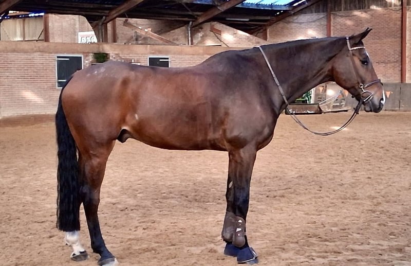 ✨Einzigartige Gelegenheit✨ Dieses wunderbare Pferd Saffran steht zum Verkauf. Merkmale: * 14 Jahre alt * Vollblüter * Allround-Pferd * 1,83 m * KWPN * Verkaufspreis €15.000 Vater: Stakkato Dream X Riverman Saffran ist ein ruhiges und lernwilliges Pferd, kann aber manchmal etwas sensibel sein. Derzeit ist er auf 1,20 m klassifiziert, hat international bis 1,35 m gezeigt und Master Class-Springen von 1,20 m bis 1,55 m absolviert sowie eine Mauer von 2,10 m übersprungen. Dieses Pferd besitzt ein außergewöhnliches Vermögen und ist nicht schreckhaft – er bringt dich immer sicher auf die andere Seite. Auch auf ungewohnten Gelände ist er brav. In der Dressur ist er mit meiner 12-jährigen Tochter auf Niveau B klassifiziert, bei Dressurwettbewerben ist er äußerst brav, und meine Tochter reitet ihn problemlos. Im Umgang ist er brav, aber man muss ihn zunächst kennenlernen, da er anfangs etwas schüchtern ist. Er ist brav bei Ausritten allein oder in der Gruppe. Auch viel Verkehr macht ihm nichts aus. Bei einem ruhigen Reiter ist Saffran selbst ebenfalls ruhig. Der Grund für den Verkauf ist, dass ich auf der Suche nach einem jüngeren Pferd bin. Bei Interesse gerne anrufen oder per WhatsApp unter +31 6 23611417. Videos auf Anfrage. Er ist in Hengelo zu besichtigen.