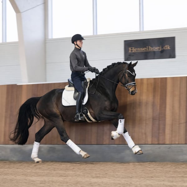 Verkauft an den Höchstbietenden am Donnerstag, den 23. um 20:30 Uhr (MESZ +02:00) Weitere Details, Röntgenbilder und Video finden Sie direkt auf unserer Webseite und können dort auch Ihr Gebot abgeben: https://hesselhoej.dk/en/auction/hesselhoej-be-boss/ Attraktiver junger Wallach mit starkem Pedigree und viel Potenzial für die Zukunft Be Boss ist ein auffälliger und moderner 2022 geborener Wallach, der durch sein ansprechendes Erscheinungsbild, drei ausdrucksstarke Gänge und hervorragende Rittigkeit besticht – eine vielversprechende Perspektive sowohl für junge Pferdeklassen als auch für den zukünftigen Sport. Er beeindruckt mit drei hochwertigen Gängen, die eine natürliche Aufwärtsbewegung, Elastizität und gute Mechanik zeigen – ein sehr vielversprechendes Pferd für Turnier und Entwicklung. Sein Vater ist der Prämienhengst Hesselhoej Donkey Boss, bekannt für seinen modernen Typ, seine Rittigkeit und Leistungsfähigkeit. Seine Mutterlinie ist ebenso stark: Seine Mutter ist eine Bronzemedaillen-Mare, seine Großmutter eine Elite-Mare – klare Indikatoren für bewährte Qualität und Zuchtqualität. Be Boss ist im täglichen Umgang leicht und unkompliziert, besitzt ein freundliches Wesen und eine arbeitswillige Einstellung. Er verbindet gute Rittigkeit mit Entwicklungspotenzial und ist somit der ideale Partner für Reiter, die einen talentierten Nachwuchshengst aufbauen möchten. Ein äußerst vielversprechendes Pferd mit den Qualitäten, um in der zukünftigen Dressur erfolgreich zu sein. Preis ohne 25 % dänische Mehrwertsteuer.