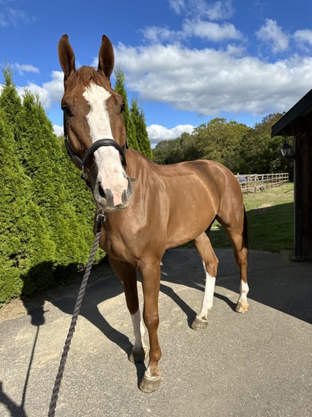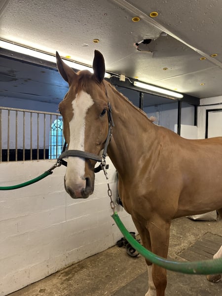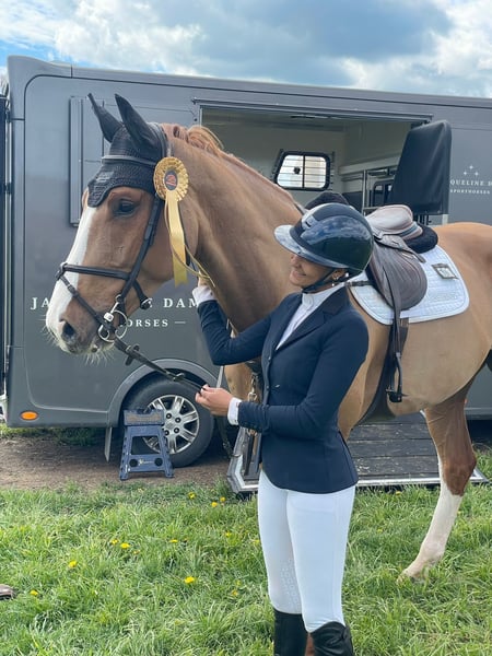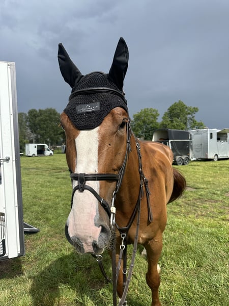 Amazing gelding by Complete (Coupe de coeur) - Lexicon (Voltaire). Lots of scope for bigger classes in the future. Competed up to 120 cm. Big horse, but super up hill and light in the hand. Easy to handle: can be inside alone without other horses, used to hack in the forest, easy to shoe, load, etc. Good x-rays.