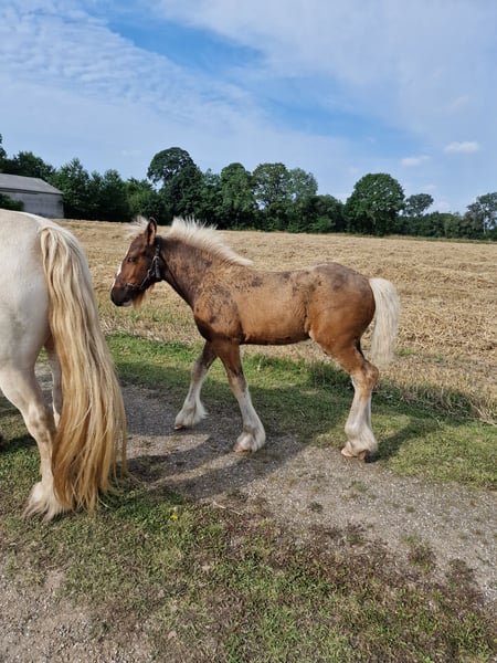 Unique Giants Hustler is a beautiful silver bay Drum colt that is allmost red to look at because of the silver gene. Hes testet pssm1 free and ready to find a new home. Hes a very curious and easy to handle boy. He can lift legs and be handled by leash. Worldwide transportation can be arranged. We have been breeding Shire and Drum horses the last 10 years.