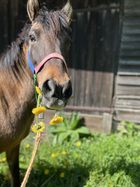 Little Oni is a very sweet and lovable pony girl. She has been in my possession since February and was intended for my children. Her role was to be a companion pony and to participate in basic riding activities. Unfortunately, due to her limited training, she is not suitable for our community. She is accustomed to 24/7 turnout, whether in a paddock, stable, or open stall. She is perfect as a companion pony, for leading training with children, lunging, cuddling, and ground work. Oni lives in a pony herd and gets along well with others. I have spent a lot of time riding her with my children in the woods and on the pasture, and she handles it very well. She comes with papers, is vaccinated, dewormed, trimmed by the farrier, loads easily onto a trailer, and does not bite or kick. I bought Oni as an eczema-free pony, but she did have some issues which I was able to manage very well. Since then, she has been problem-free. If you are interested in Oni, please feel free to contact me.