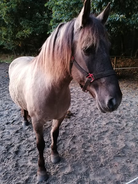 For sale is my Friesian-Dülmen cross gelding, Shirtan, affectionately called Django. Django is 14 years old, stands at 14.8 hands, and is suitable for even taller riders. I have only had Django for a few weeks, but unfortunately, my personal circumstances have changed so much that I can no longer keep him long-term. Sometimes, life turns out differently than we hope. Previously, Django was part of a herd with mares (including ponies, larger horses, and Shetlands). Currently, he is in a gelding-only herd. He can also be kept in a mixed herd; here, he tends to be lower in the pecking order and avoids conflicts and stress. Django is not an eczema sufferer, is barefoot, and has no known allergies. During the summer, he was turned out 24/7 on pasture (free-range stable). I have gradually acclimated him to being stabled at night. He takes some time to settle in fully and initially shows separation anxiety when leaving his herd. Nonetheless, he is manageable and does not panic. Regarding riding, I cannot say much as I have not yet ridden him myself; therefore, he is being sold as unmounted. I have started groundwork to rebuild his musculature, so a trial ride is not possible at this time. In the past, he was ridden recreationally in Western riding and occasionally competed in Pleasure and Trail classes at smaller EWU events. It is very difficult for me to part with this handsome, lovable gelding, but he is not a last-minute sale, and quality comes before price. He is happy to take his tack and accessories with him for an additional fee, as I am giving up riding altogether and have a good amount of equipment available. Django will not be sold to riding schools, as he needs a stable, dedicated handler. I kindly ask dealers and traders to refrain from inquiries.