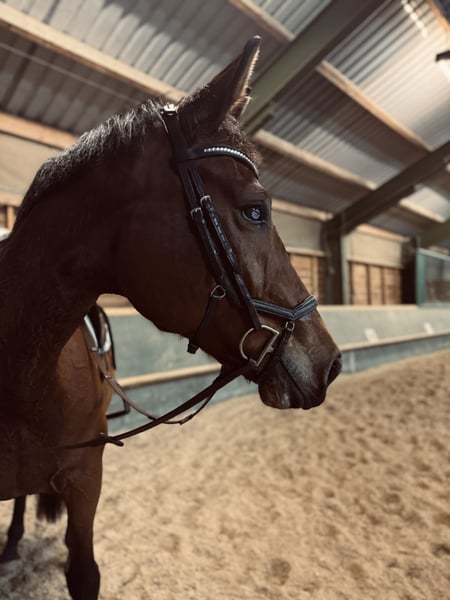 Te koop staat een 10-jarige bruine merrie met een stokmaat van ongeveer 1,72 m. Ze is een grootgebouwde, elegante merrie met een prettig karakter en zoekt een passend nieuw thuis. Ze is braaf in omgang en kent de gebruikelijke routines in het dagelijks leven. Ze is zeer mensgericht en goed handelbaar. Bij haar is Kissing Spines graad 2 vastgesteld. Volgens de dierenarts is ze, met de juiste spieropbouw en aangepast training, weer normaal te rijden en te springen. (Eventueel ook voor wedstrijden geschikt, afhankelijk van interesse). Daarnaast heeft ze op één oog een visuele beperking, maar daarmee kan ze goed omgaan in het dagelijks leven. (Heeft ze sinds haar tweede levensjaar). Ze wordt daarom onder de marktwaarde aangeboden, bij voorkeur aan iemand met ervaring in spieropbouw en gerichte training. Geen noodgeval. Bij serieuze interesse graag meer informatie, foto's of video's via bericht.