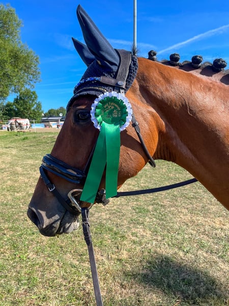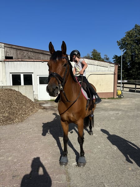 Aufgrund Reitsportaufgabe trenne ich mich schweren Herzens von meiner tollen Stute Candela. Ich habe sie 2022 direkt vom Züchter gekauft. Candela ist ein 11 jähriges deutsches Sportpferd und im Springen siegreich A** vorgestellt worden. Die letzten Jahre wurde sie aufgrund gesundheitlicher Probleme meinerseits auch nur wenig auf Turnieren vorgestellt. In neuer und fremder Umgebung ist sie etwas „guckiger“, aber jederzeit brav. Candela ist stets brav im Umgang und auch Unarten hat sie keine. Dennoch braucht sie einen sicheren Reiter, da sie sehr fein zu reiten ist und gearbeitet werden möchte. Im September 2022 wurde sie am Fesselringband hinten links operiert. Das Bein wurde im Anschluss in regelmäßigen Abständen tierärztlich per Ultraschall kontrolliert, ohne Einschränkungen. Sie läuft seitdem ohne Probleme. Im Januar 2025 hatte sie eine Reizung der Sehnenscheide hinten rechts, wobei eine Galle geblieben ist. Verkaufen möchte ich sie deshalb als gehobenes Freizeitpferd. Sie ist absolut schmiede- und verladefromm. Natürlich ist sie regelmäßig geimpft, entwurmt und beim Zahnarzt vorgestellt worden. Ich wünsche mir für sie ein 5* zu Hause, mit täglich Auslauf mit Anderen. Zur Zeit steht sie Tagsüber in der Herde auf dem Paddock/Koppel und Nachts in einer Paddockbox, kennt aber auch Offenstall. Aufgrund ihrer Abstammung auch für die Zucht interessant. Große AKU mit Röntgenbildern aus Juli 2022 ohne Befunde. Passendes Equipment könnte gegen Aufpreis mit abgegeben werden. Um Reittourismus zu vermeiden, werden fürs Probereiten 30€ berechnet, die beim Kauf angerechnet werden.
