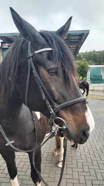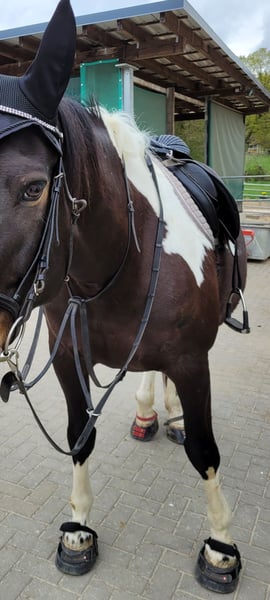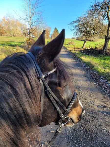 For sale: Versatile German riding horse – a friendly leisure partner. We are offering an elegant German riding horse, bred by us, born in 2015. This attractive mare impresses with her friendly nature and beautiful appearance, making her an ideal companion for leisure riding. She is, however, looking for regular work and training. With a height of 16.1 hh, she has a well-balanced size. Her sire is Idefix from the Icon line. The mare is regularly ridden in the field and occasionally on the arena. She has a solid basic training, is consistently eager and friendly in handling, confident on her feet, and has a pleasant basic gait. Thanks to her calm and balanced temperament, she is suitable for advanced riders as well as ambitious leisure riders who value a reliable and well-trained partner. She is healthy, regularly dewormed, teeth have been maintained regularly, and she is in good condition. No known health issues, and she has always received her vaccinations reliably. She is familiar with open stable management and has also been kept in a box stall before. Due to personal reasons, we are reluctantly selling this mare. This German riding horse mare is a true asset for any leisure rider seeking a dependable, well-trained horse. For inquiries or further information, please feel free to contact me. A custom-made Kent & Masters saddle can be purchased at an additional cost. All winter blankets are included.