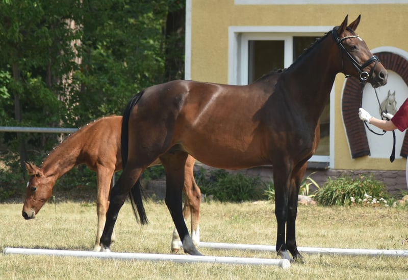 Miami is a proven broodmare, having produced four premium foals with us so far. She is easy to handle and well-behaved. She is currently in foal to the Bundeschampion Viva Vitalis and is expected to foal in April 2026. Her first foal, now four years old, has already been successfully presented in riding horse competitions. Miami was backed at the age of five but has not been ridden since due to her successful breeding career.