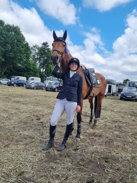 Louisa ist eine vielseitig veranlagte Stute, die immer ehrlich ist, gefallen möchte und immer versucht ihren Job so gut wie möglich zu machen. Absolut lieb im Umgang. Sie liebt das Gelände und die vielseitige Arbeit. Sie war bisher als Schleifensammler in allen drei Disziplinen unterwegs. Im Springen fühlt sie sich im A Bereich wohl. In der Dressur auch im L Bereich. Da ich persönlich in der Vsk " mehr" reiten möchte, trenne ich mich schweren Herzens. Louisa ist auch als Zuchtstute geeignet. Sie hat an der Stutenleistungsprüfung mit guten Noten abgeschnitten. Ich suche für Louisa ein "für immer" Zuhause, wo sie vielleicht einem jungen Nachwuchstalent noch viel Freude bereiten kann.