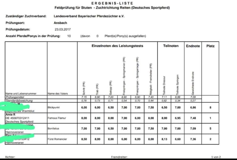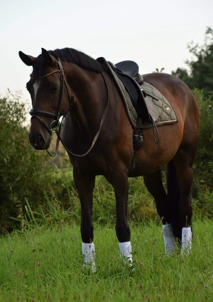 Schweren Herzens habe ich mich wegen meiner Schwangerschaft dazu entschieden meine 2011 geborene DSP Stute Amie zu verkaufen. Sie ist braun mit vier weißen Beinen und ist 1,73 m groß. Ich habe sie seit 2017 und sie war bis auf eine Ringband-Op 2021 immer gesund. Sie hat drei sehr gute Grundgangarten. Ist A Dressur platziert, beherrscht aber auch alle L Lektionen. Jedoch bei der Dressurarbeit und Umgang gerne auch mal Stutig. Im Gelände immer brav! Aber kein Anfängerpferd. 2022 hatte sie ein tolles Stutfohlen. Bei ihrer Stutenleistungsprüfung war sie Siegerstute. Im Schritt, Trab und Galopp alles 8er Noten. Durch meine Schwangerschaft nicht voll im Training. Kein Notverkauf, gebe sie nur schweren Herzens an ein passendes neues Zuhause ab. Pferd steht in 71299