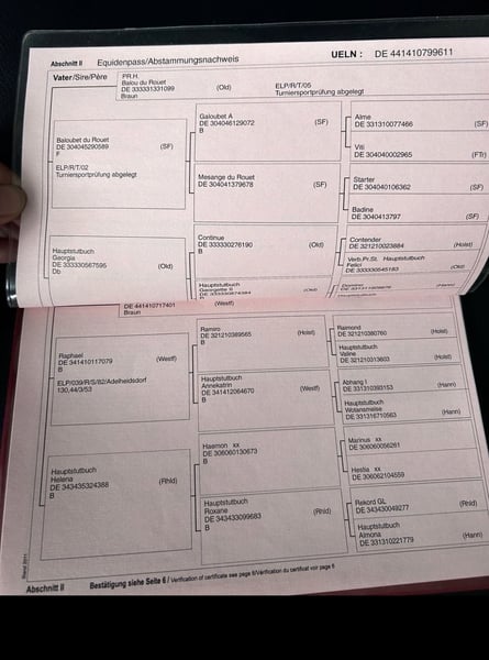 Hello, After careful consideration, I am offering my wonderful breeding mare, "Bambi," for sale. She is 15 years old and was bred from Balou du Rouet x Raphael x Haemon xx. Bambi has been in my possession for approximately six years and has never been seriously ill. Although she has not been ridden recently, she remains thoroughly athletic, whether with or without foal. Her old jumping pedigree makes the hearts of breeders beat faster. Her foal due in June 2025 is still in my possession and is developing into a promising stallion candidate. She has already produced a licensed stallion and a sport-successful mare. Despite her proud height of 1.75 meters, she is very friendly and is currently being handled and groomed independently by a 12-year-old girl. She is familiar with lunging with a surcingle and bridle. No bad habits or issues in handling. I am seeking a home for her with a family environment, where she can be pampered, taken for walks, and used for hobby breeding. Please no traders or traditional breeding farms. She is not sold as a riding horse. Currently, she is not in foal, but this can be arranged here in her familiar environment at the buyer’s expense. For further details, please contact me by phone or in person: 015737020890. Price is negotiable—please make an offer if interested.