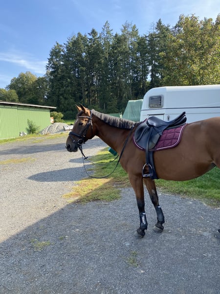 **Verkaufe deutsches Reitpferd – vielseitige Freizeitstute** Zum Verkauf steht eine charmante und gut ausgebildete deutsche Reitpferdestute, die durch ihre angenehme Art und ihr vielseitiges Können überzeugt. Geboren im Jahr 2010, präsentiert sie sich in einem schönen braunen Farbton und hat ein Stockmaß von 156 cm, was sie zu einer idealen Partnerin für Freizeit und entspannte Ausritte macht. Diese gut gerittene Stute ist bestens geeignet für Reiter, die Wert auf ein zuverlässiges und ausgeglichenes Pferd legen. Sie verfügt über eine solide Grundausbildung und zeigt sich im Umgang sowie im Gelände stets freundlich und gelassen. Dank ihrer angenehmen Größe ist sie sowohl für fortgeschrittene Freizeitreiter als auch für Einsteiger mit Erfahrung eine hervorragende Wahl. Ob für gemütliche Ausritte in der Natur, entspannte Dressurmäßiege Arbeit oder die tägliche Arbeit im Gelände – diese braune Reitstute überzeugt durch ihre Ruhe, ihren Charme und ihre Bereitschaft, den Reiter auf jeder Tour zu begleiten. Sie ist gesund, gepflegt und freut sich auf eine neue, liebevolle Familie. Ich wünsche mir für sie, eine nette junge Familie, gerne wo sie Kinder glücklich machen kann. Bei Interesse oder für weitere Informationen stehe ich gerne zur Verfügung. Eine Besichtigung und Proberitte sind nach Absprache möglich.